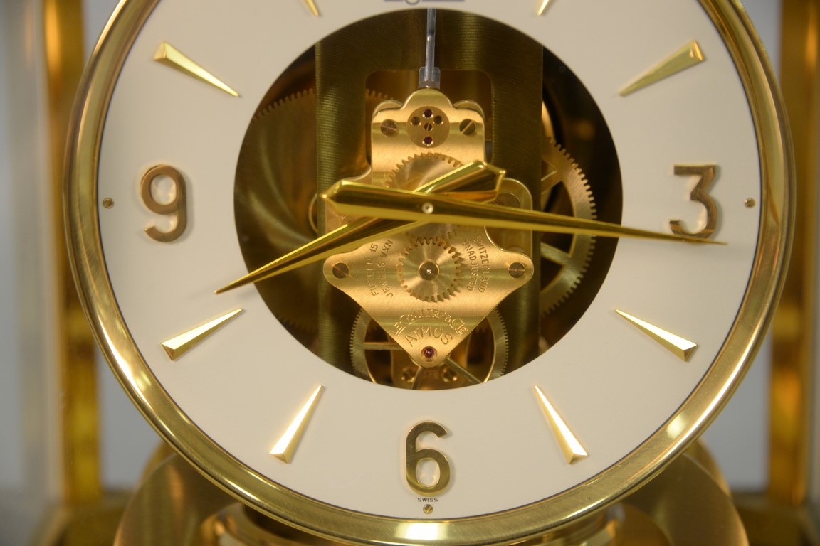 Le Coultre Swiss Atmos clock, ht. 9in., wd. 8 1/2in., dia. 6 1/2in.