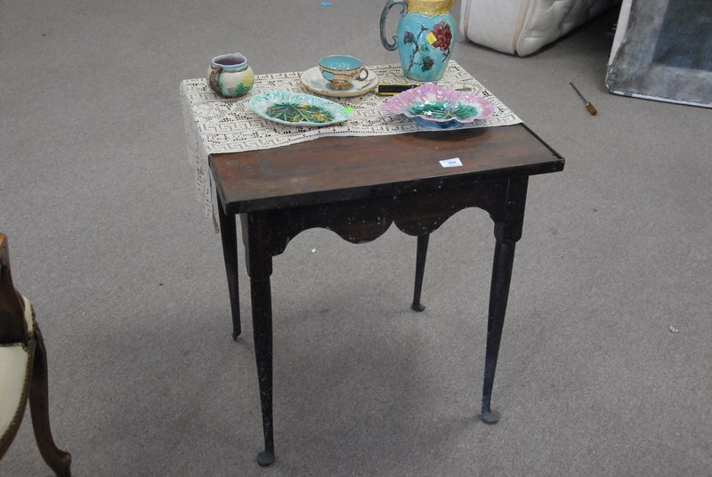 Queen Anne tea table with pad feet and replaced top, 18th century.