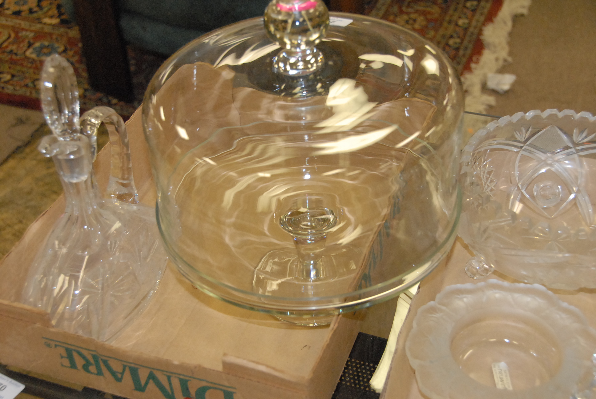 Lot 264: Three box lots of crystal including several crystal animals, cake dish with cover, carafes, etc