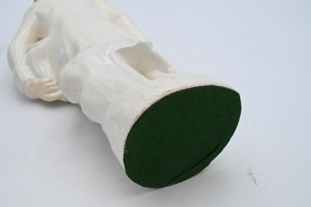 Victorian Staffordshire Figure, titled “Washington”, gilt and paint decorated standing figure, model holding tricorn hat under left arm, similarly modeled as depiction of Benjamin Franklin, height 15 1/2 inches.