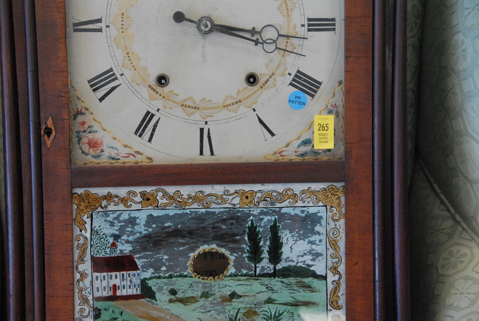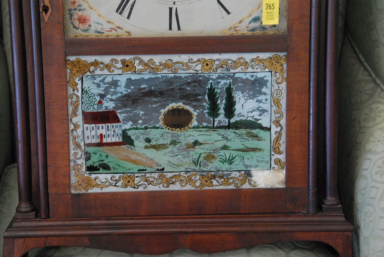 Lot 265: Federal Pillar and Scroll clock with the wooden