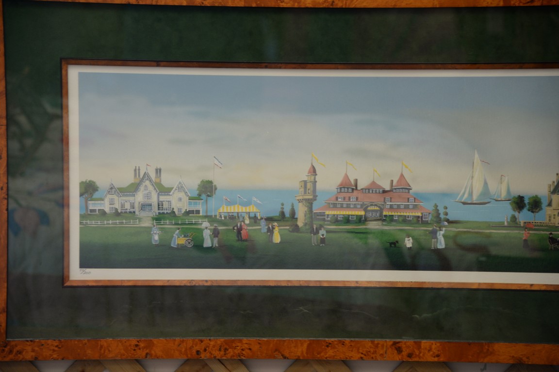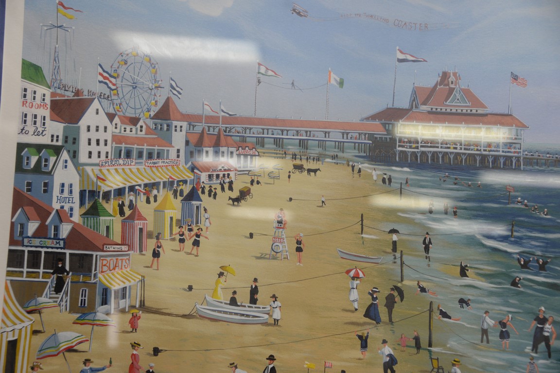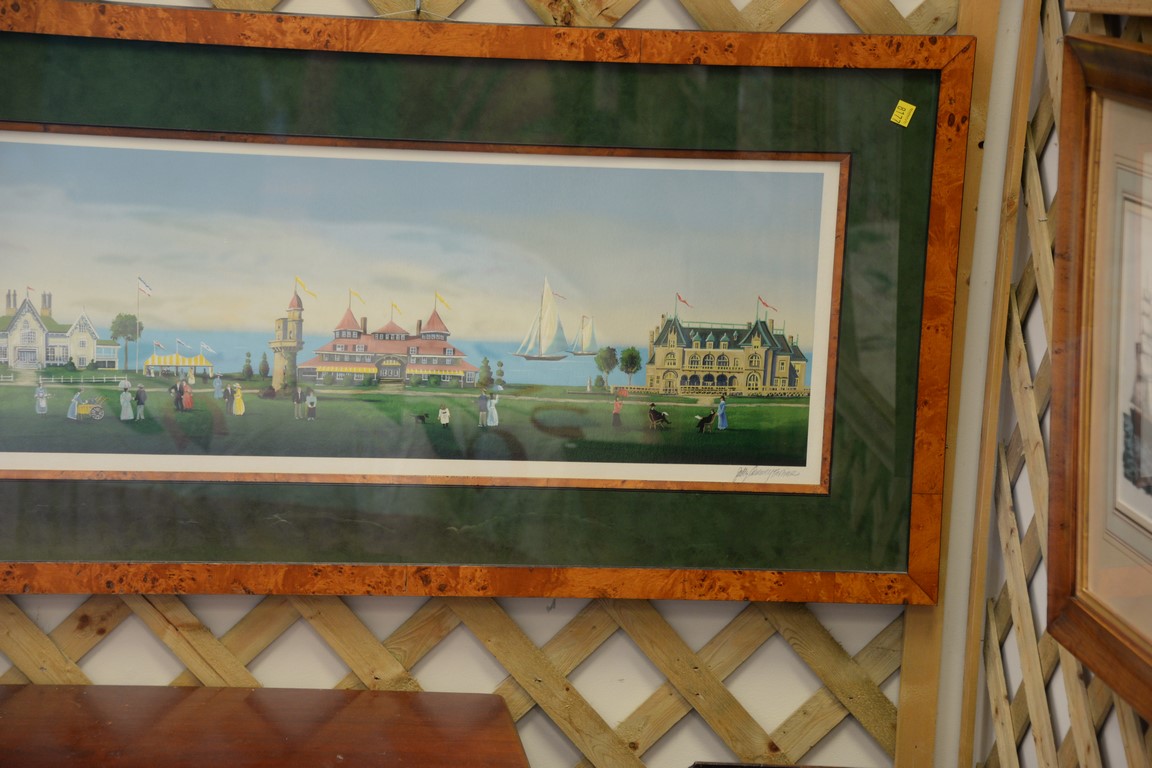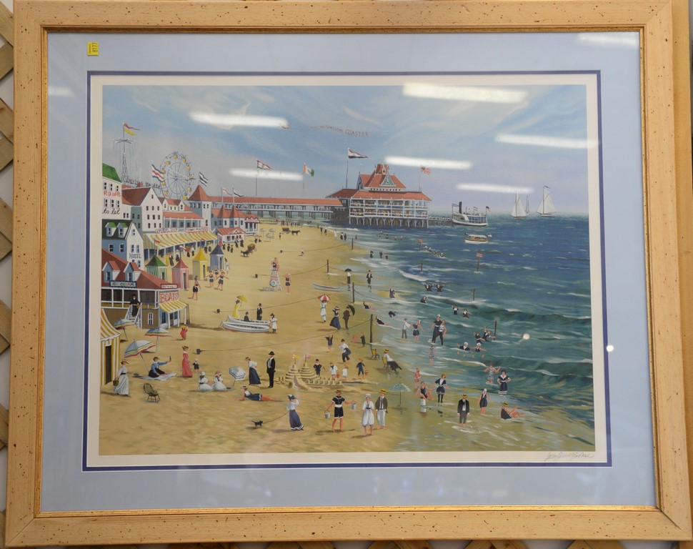 Lot 265: Sally Caldwell Fisher 1951 three prints including Beach Pier sight size 12 x 33, Ocean Edge sight size 23 1/2 x 31, and Fo…