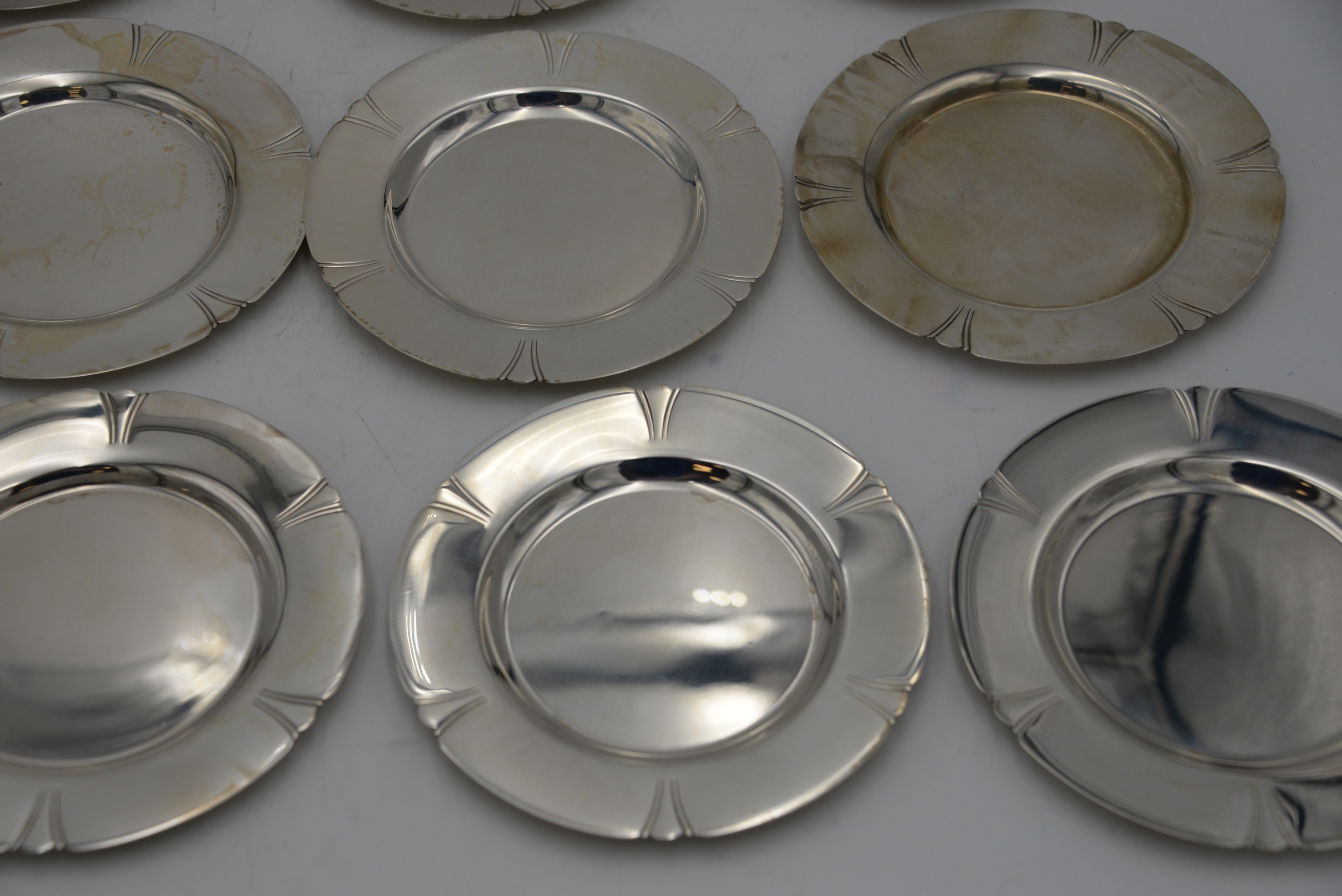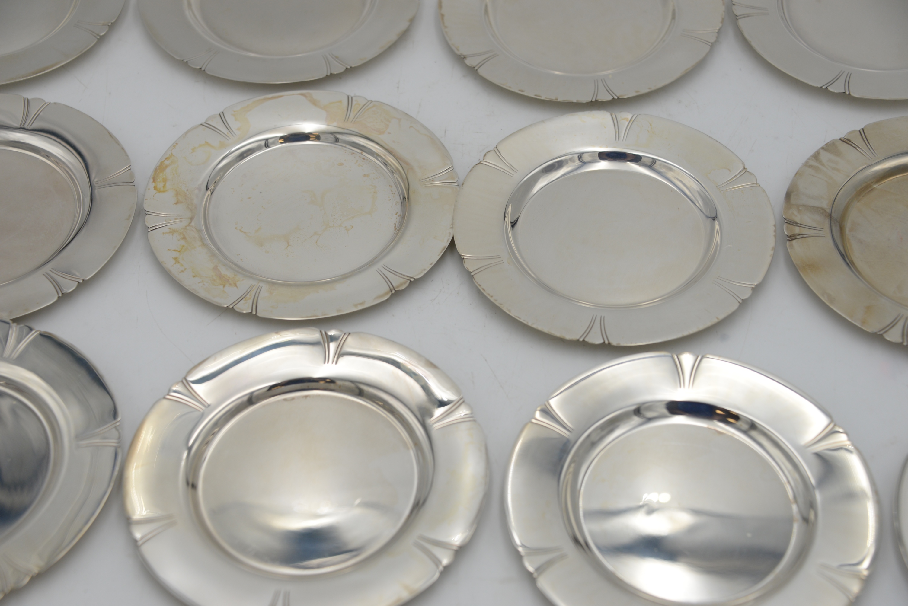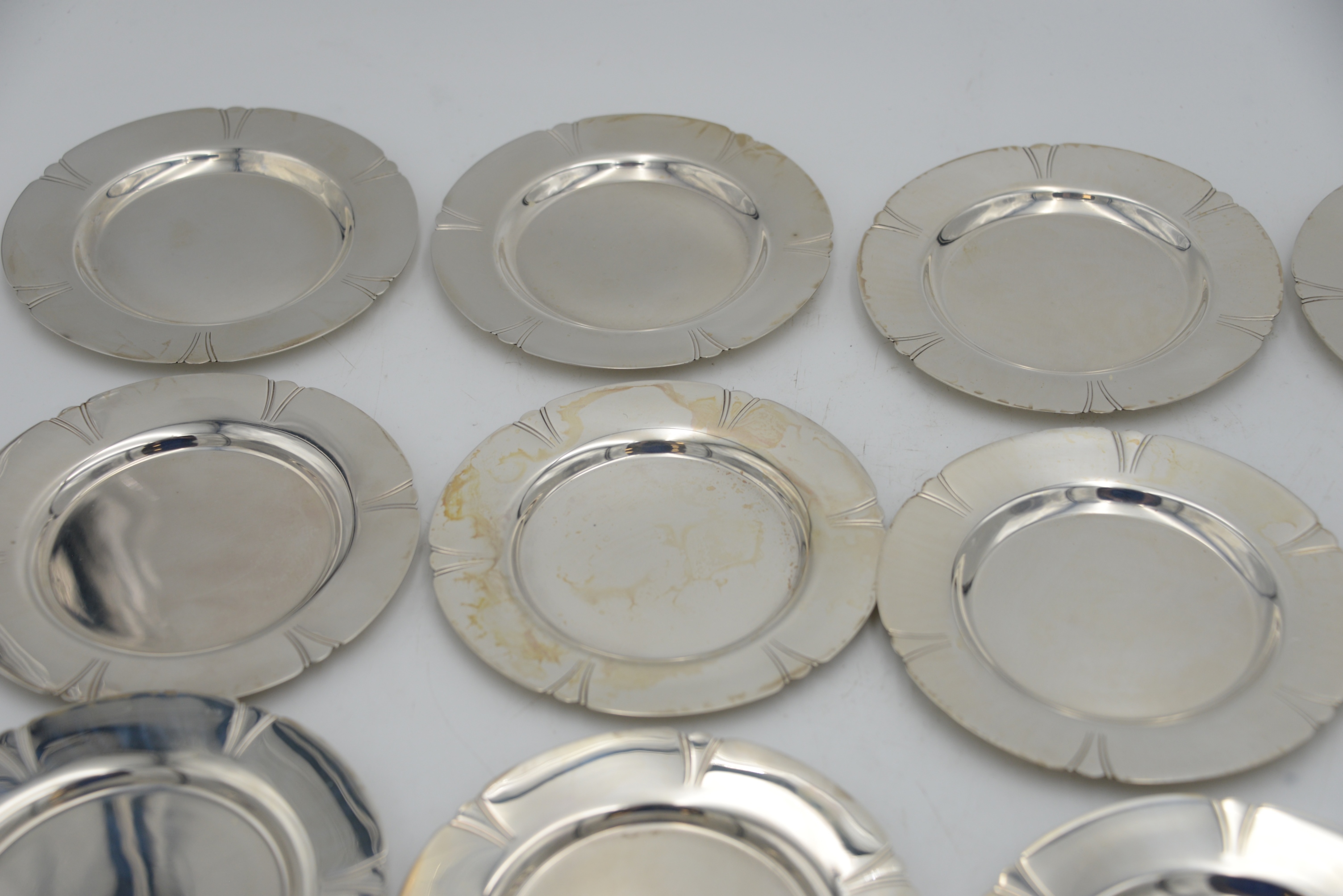 Set of 12 Sterling Silver Bread Plates, diameter 6 1/4 inches, 47.7 t.oz. Provenance: A Private Collection from Greenwich Connecticut.