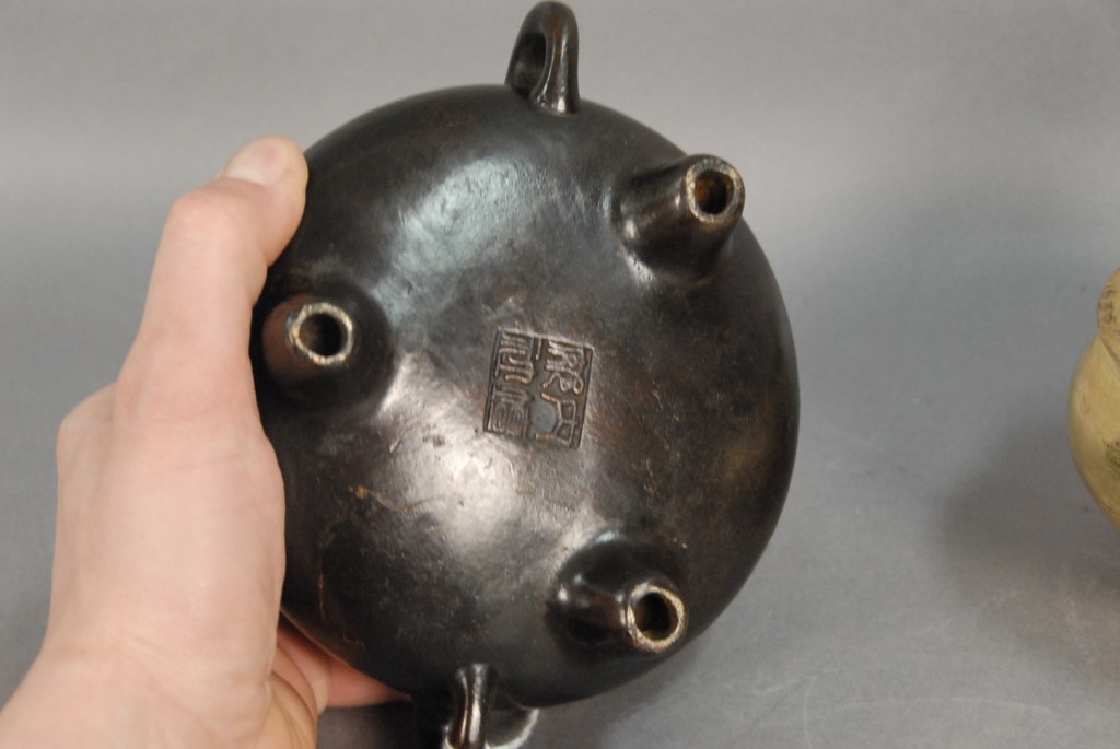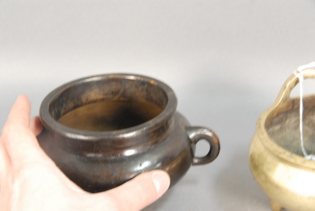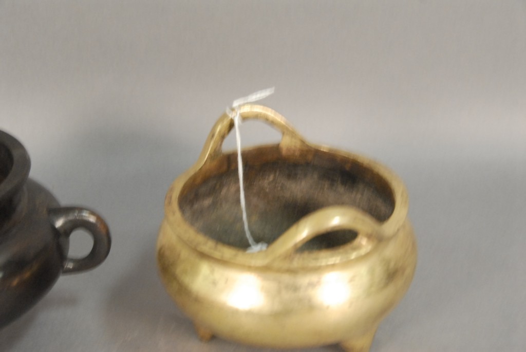 Two bronze incense burners both with seal marks on the bottom, dia. 4 3/4 and 4 1/2.