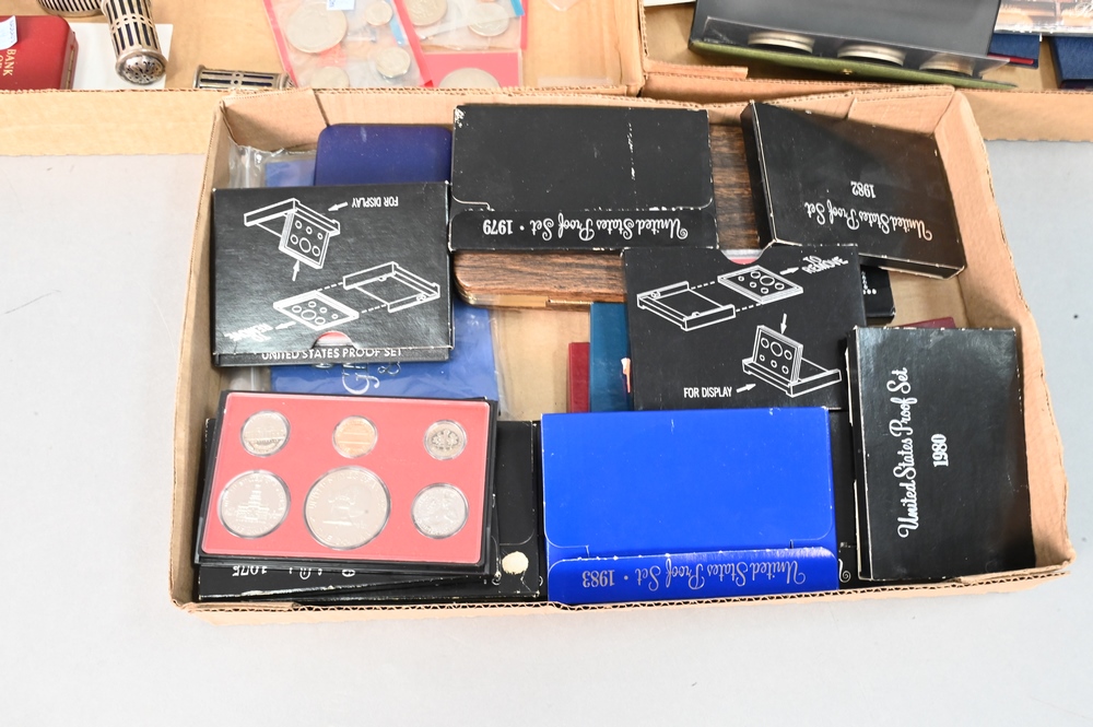 Two Tray Lots, to include ten proof sets, 1970’s – 1980’s, 1980’s mint sets, two bicentennial proof sets, six silver ingots, 20 grams each, Queen Elizabeth II July 1981, .999 fine.