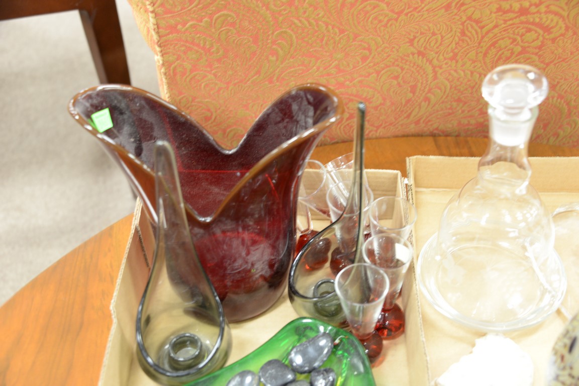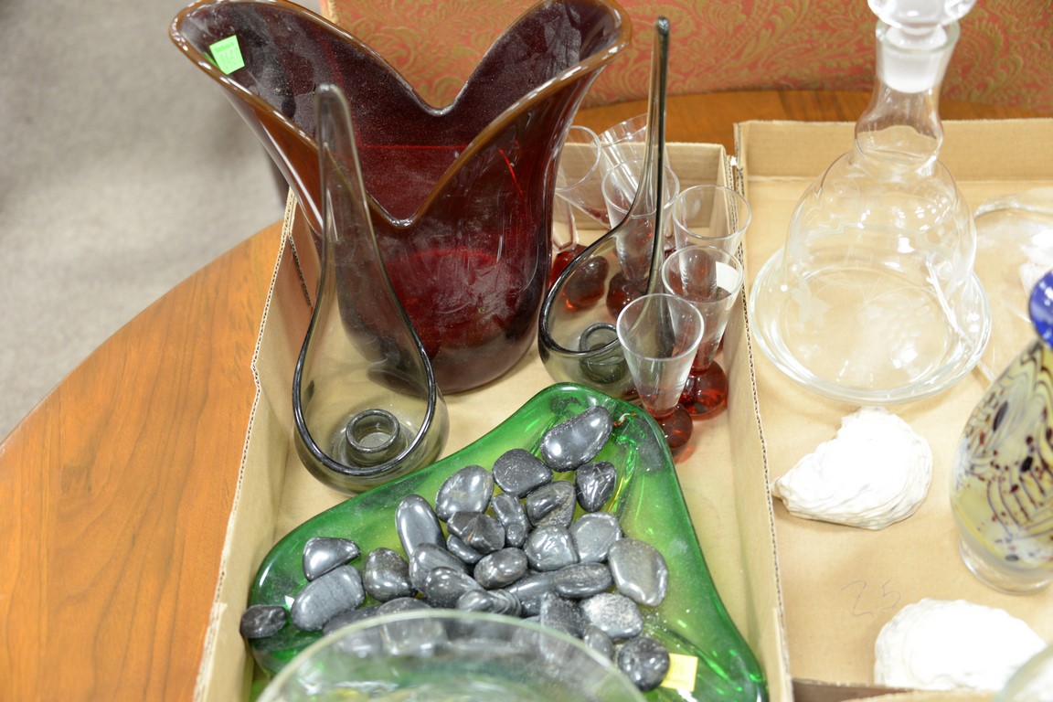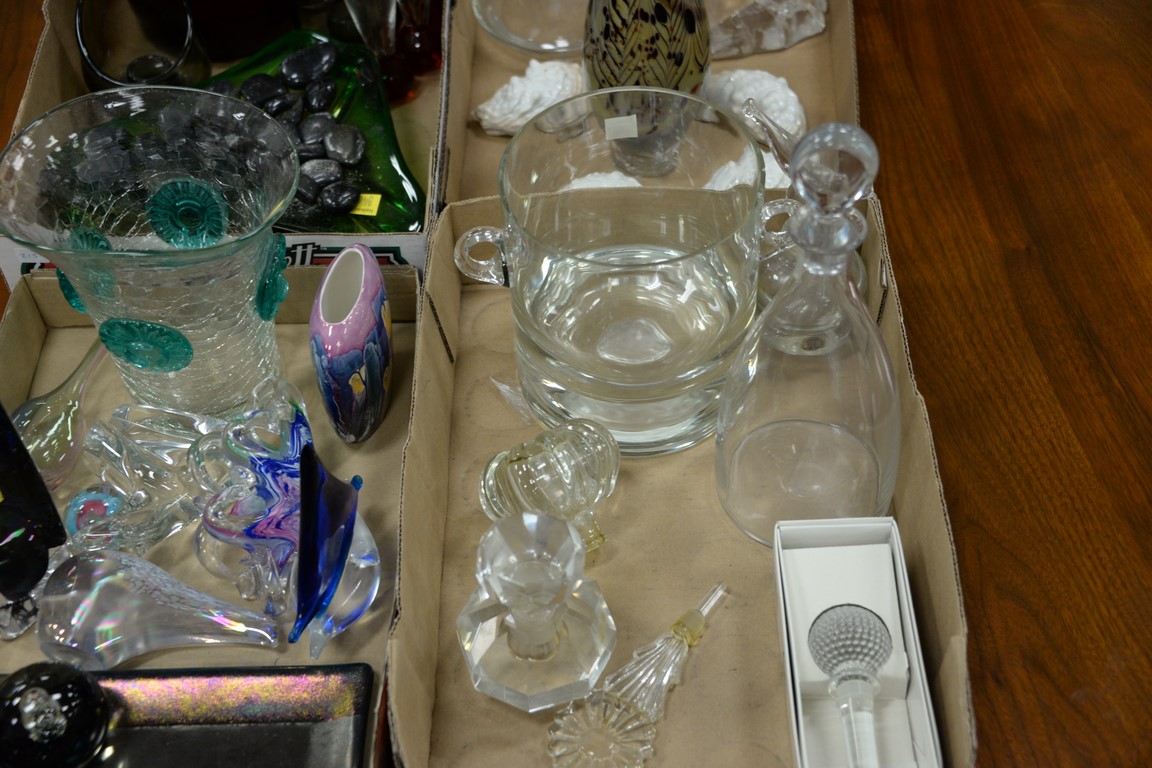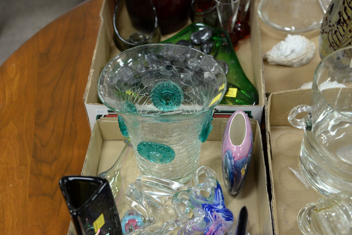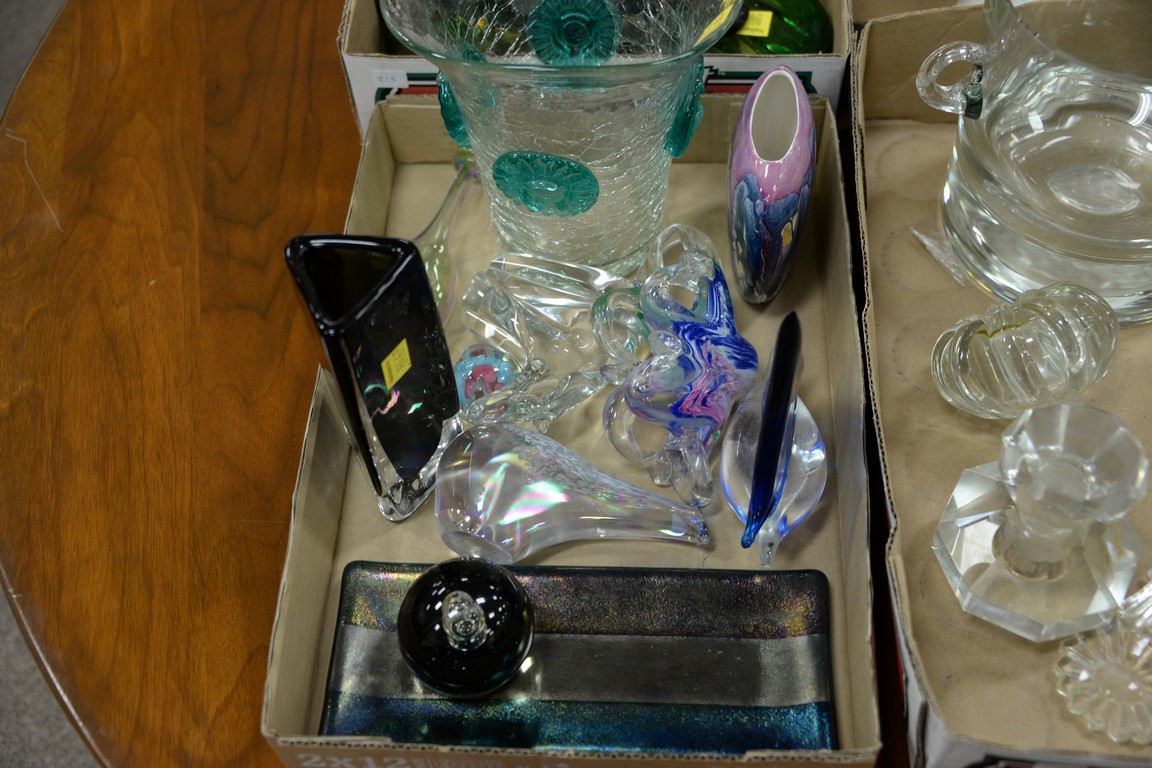 Lot 265A: Four box lots of art glass vases, Venetian glass vases, Versace Rosenthal bottle stopper, sterling cut glass ice bucket, three cryst…