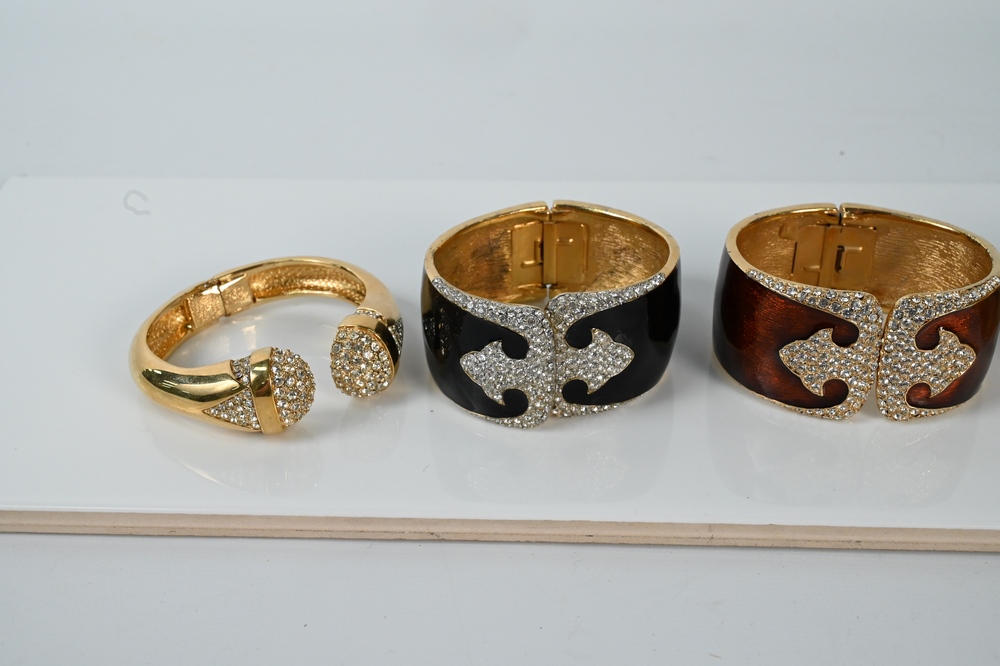 Four Ciner Enamled Bracelets, to include one black, the other copper colored, along with two having just simulant diamonds.
