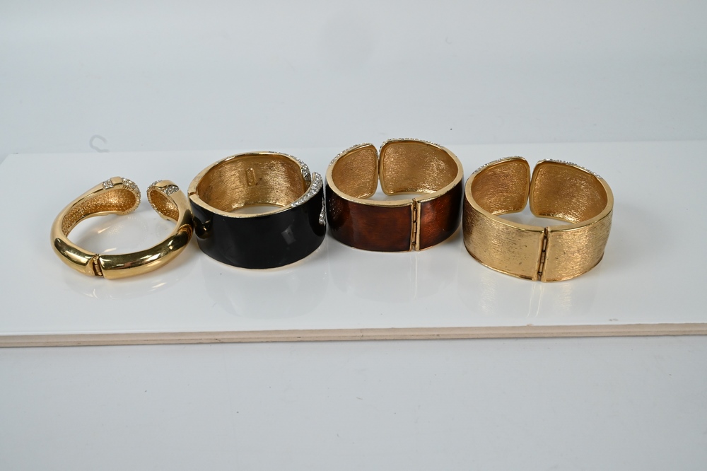 Lot 266: Four Ciner Enamled Bracelets, to include one black, the other copper colored, along with two having just simulant diamonds.