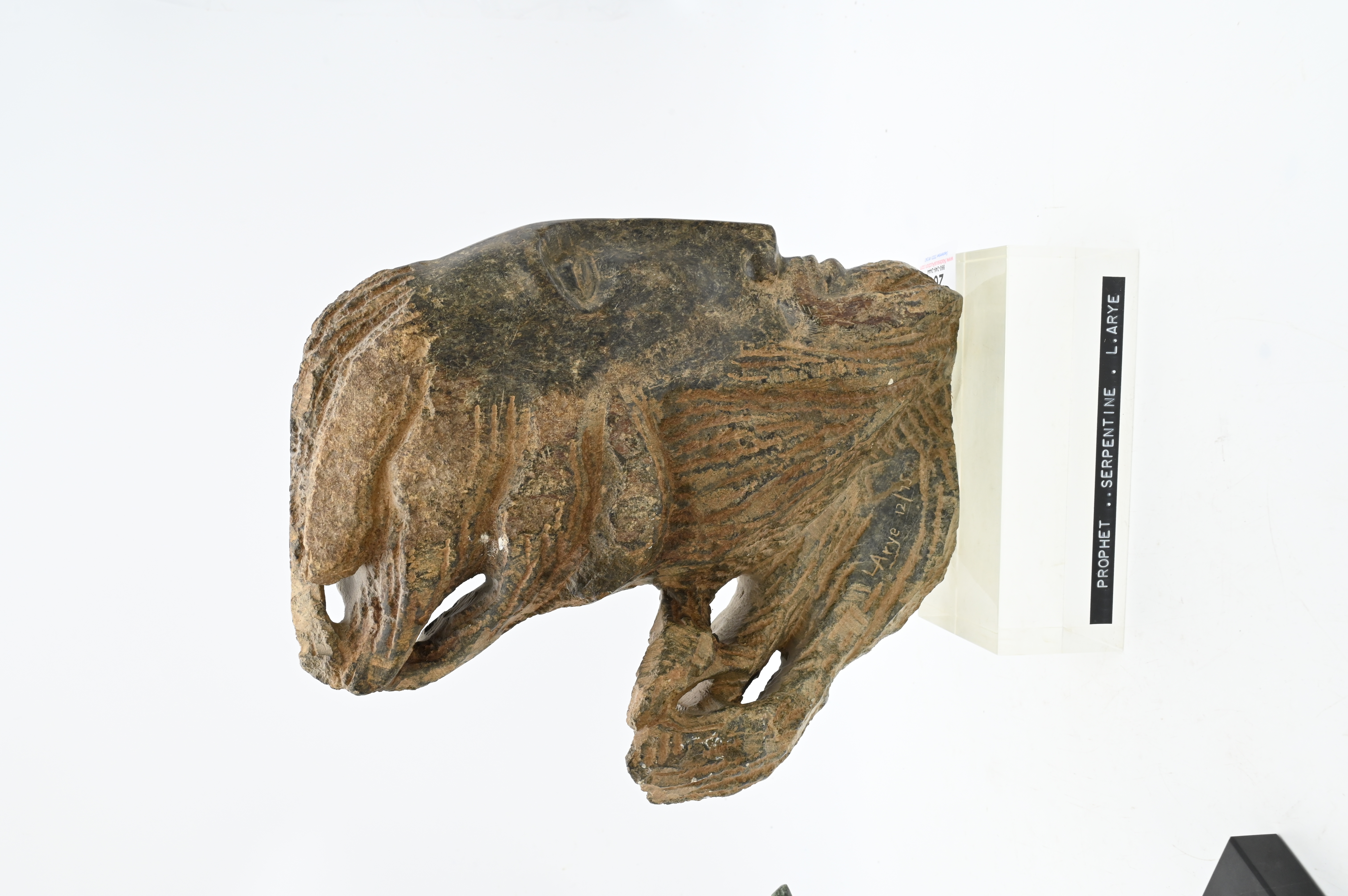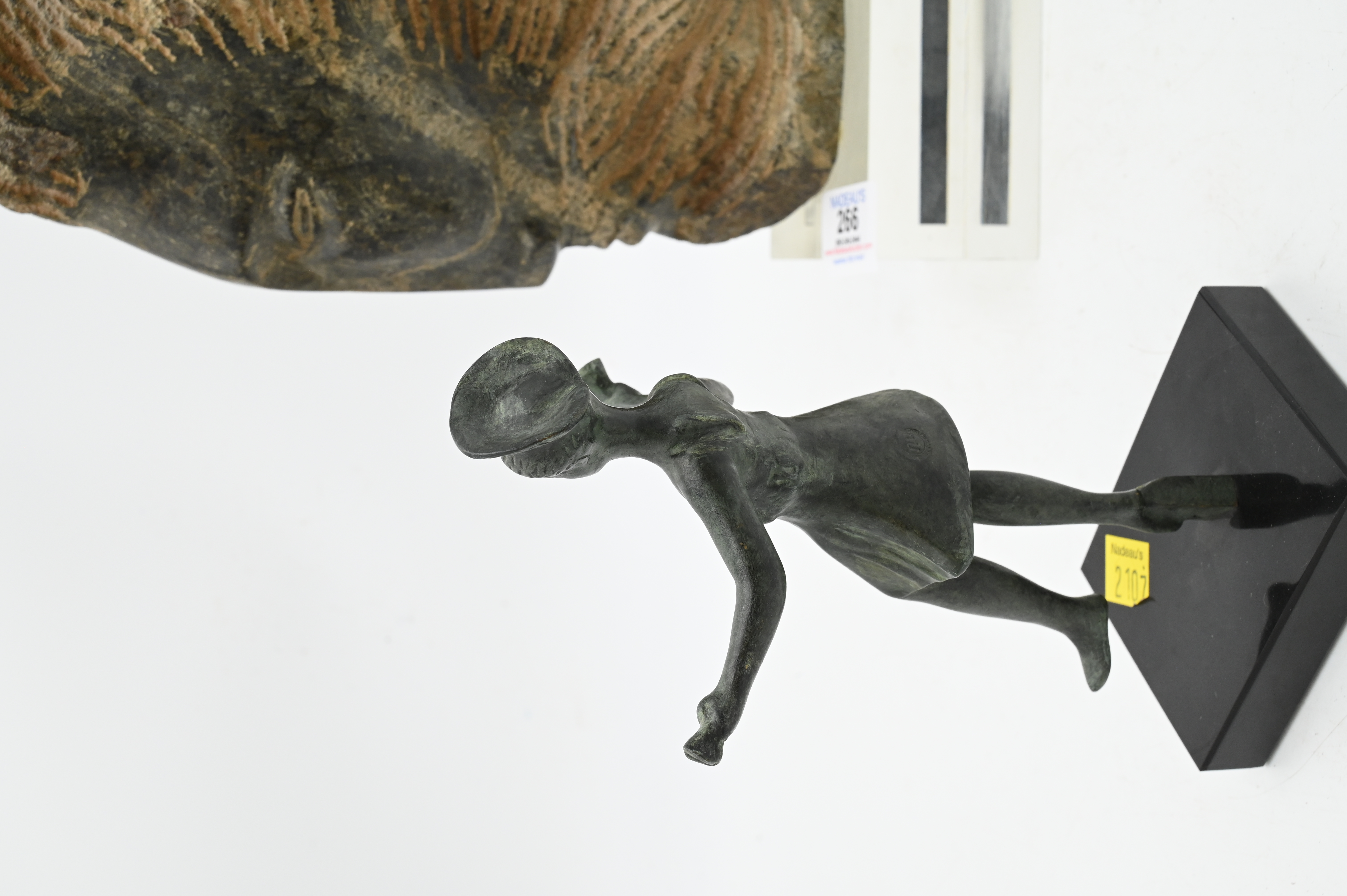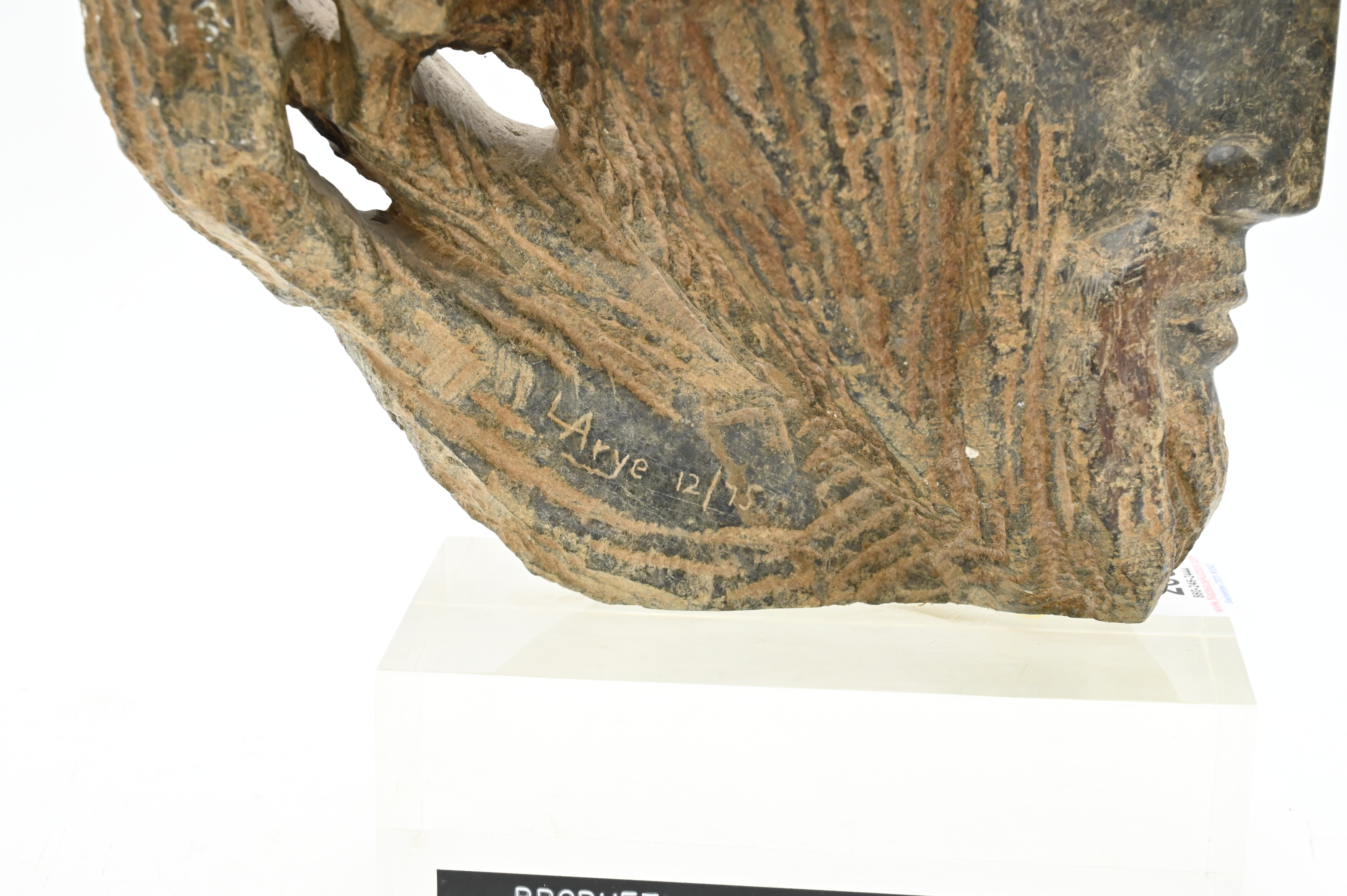 Leonora Ayre (20th Century), carved stone head prophet serpentine, signed L Arye 12/275, height 13 inches, along with an antiquity replica of a ballet dancer.