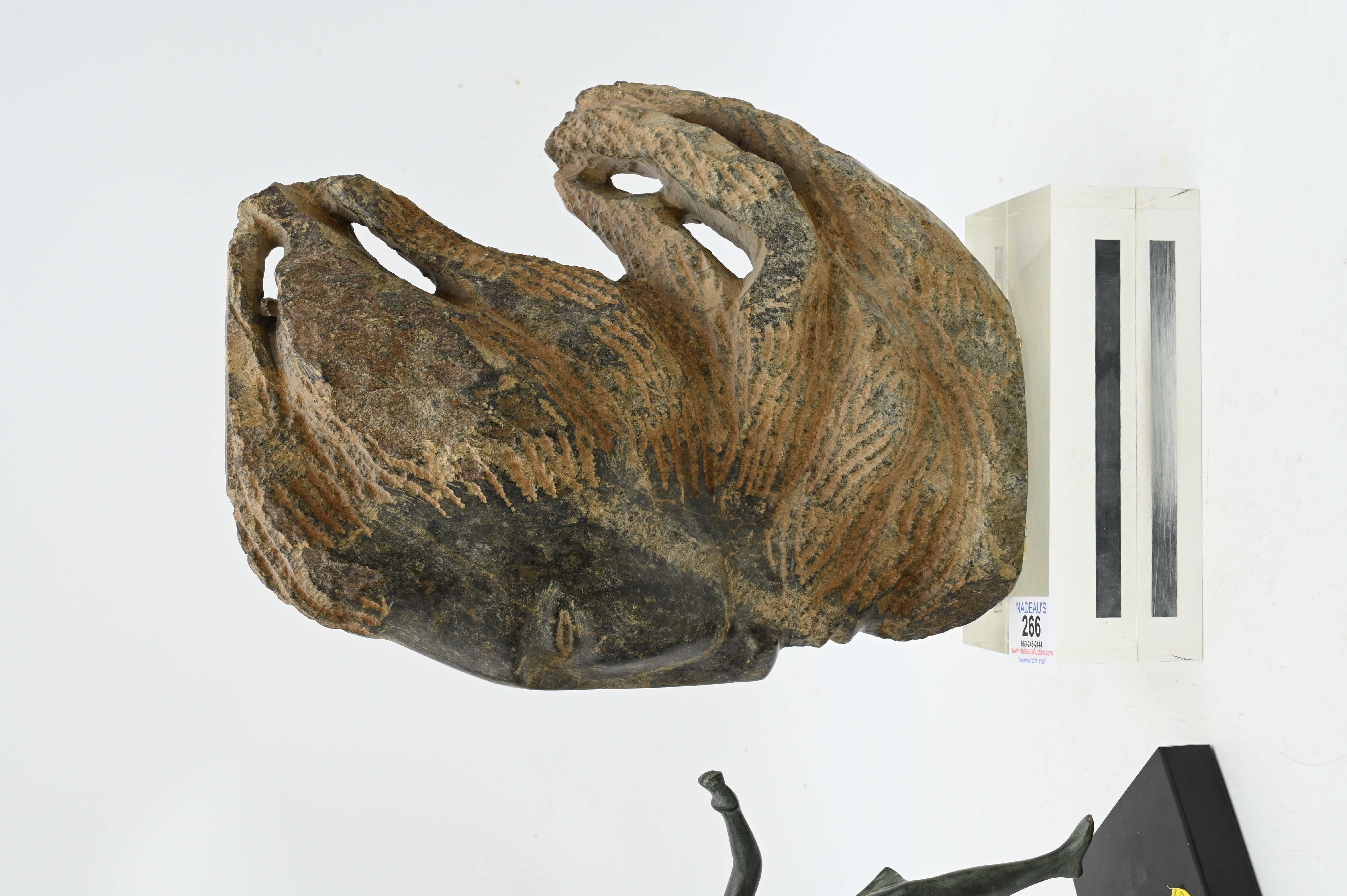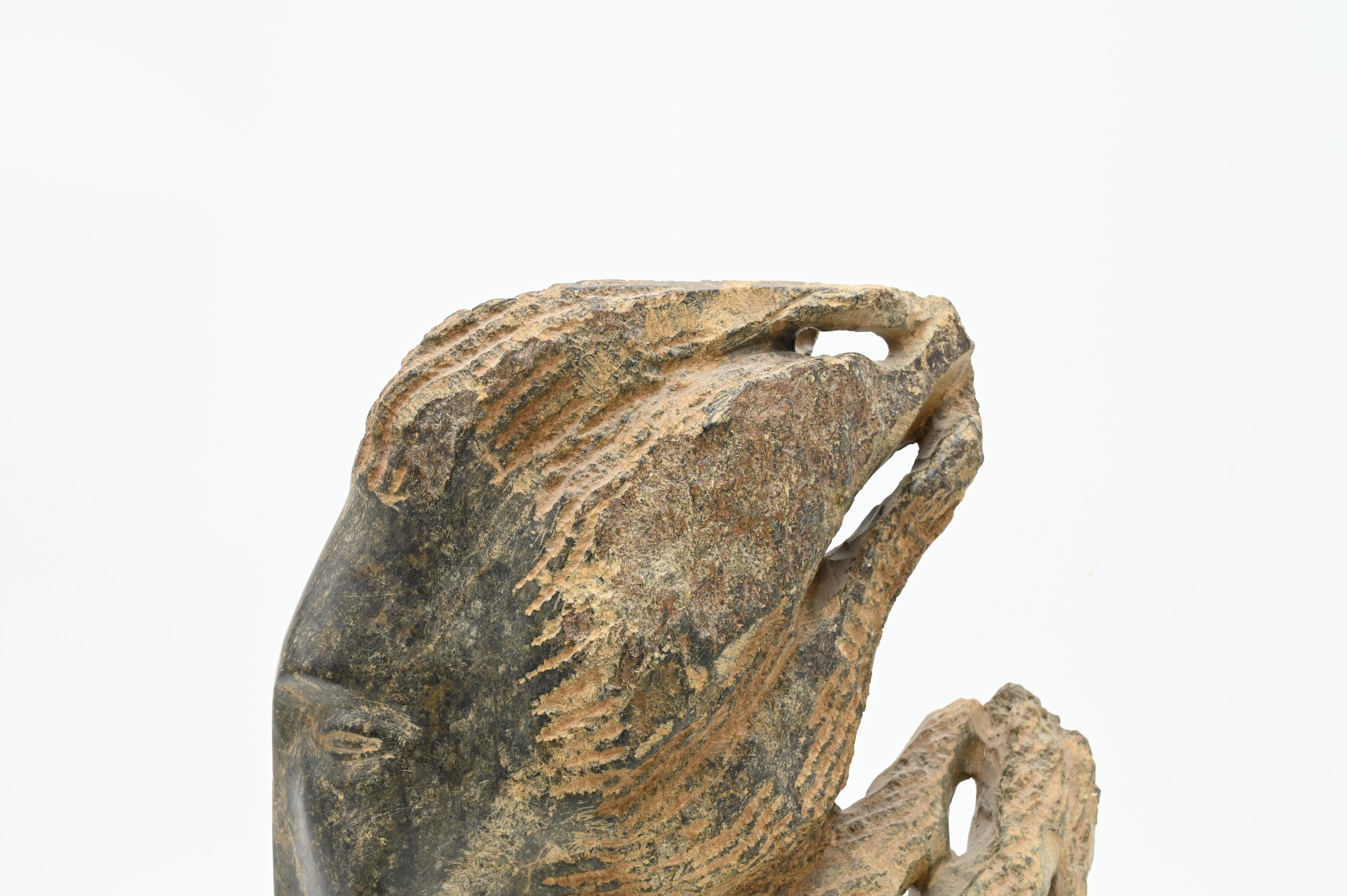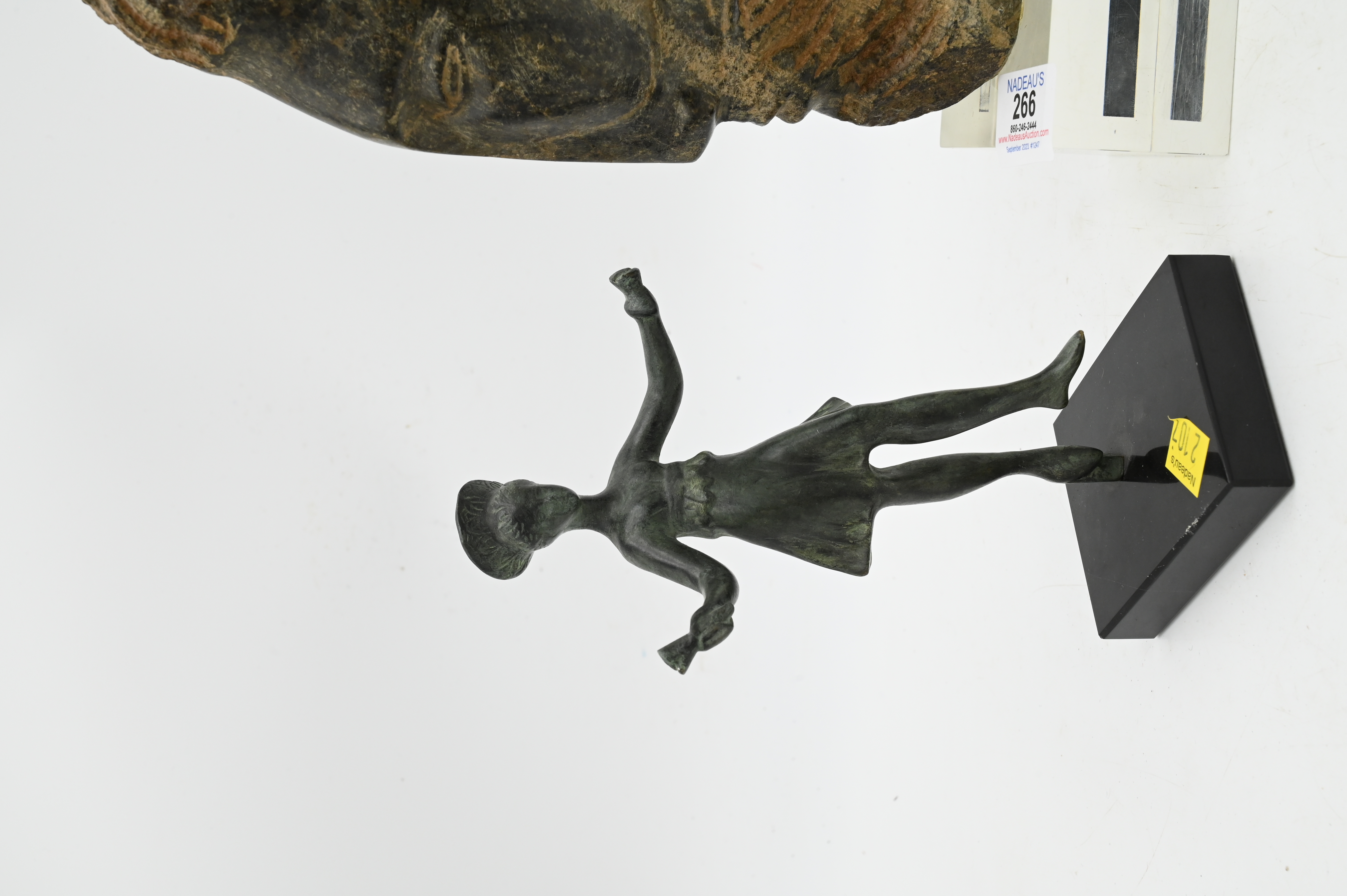 Leonora Ayre (20th Century), carved stone head prophet serpentine, signed L Arye 12/275, height 13 inches, along with an antiquity replica of a ballet dancer.