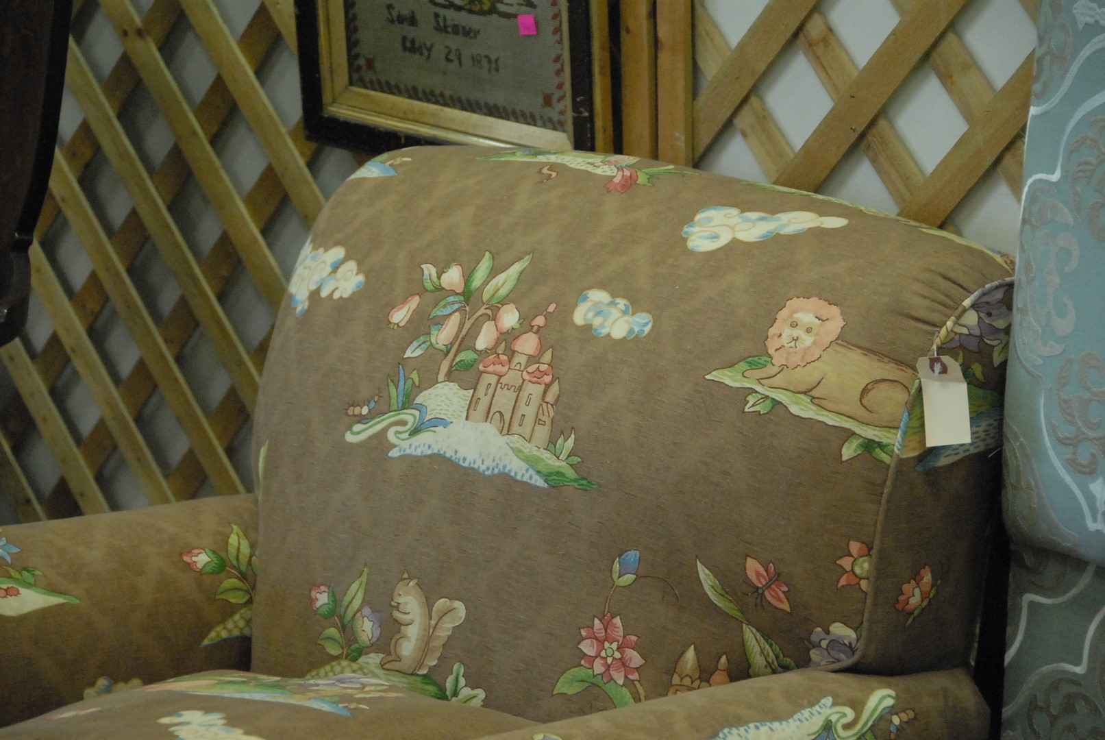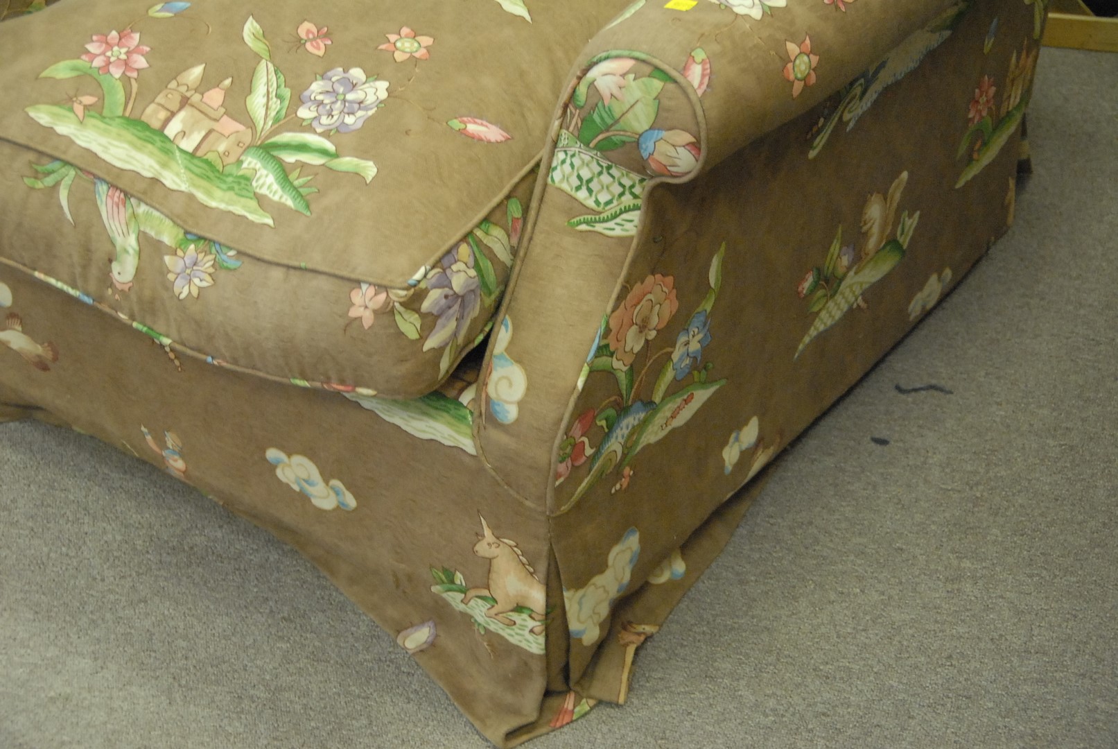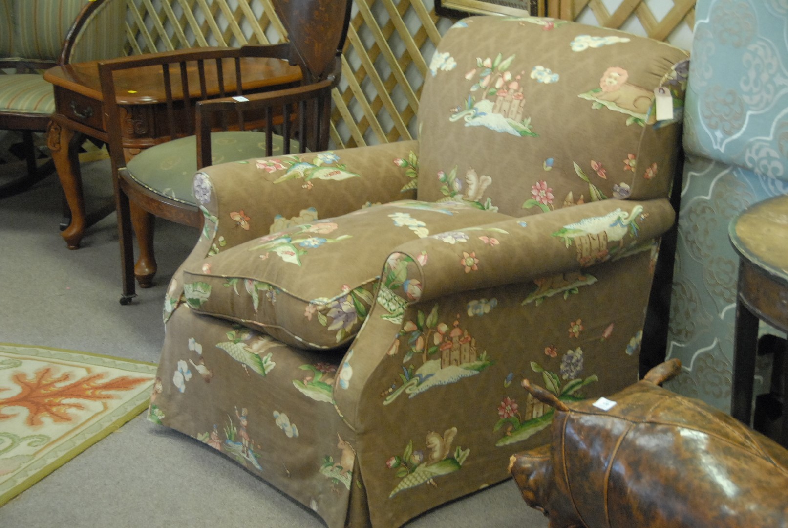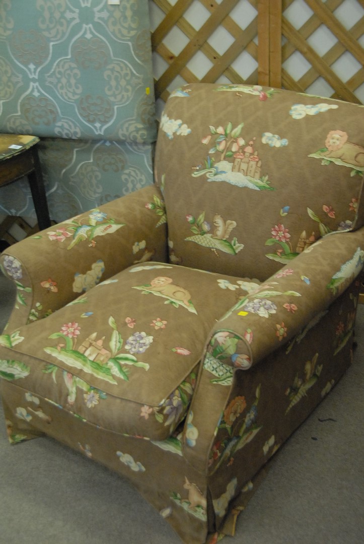 Pair of custom upholstered easy chairs. ht. 34 in. wd. 34 in. dp. 38 in.