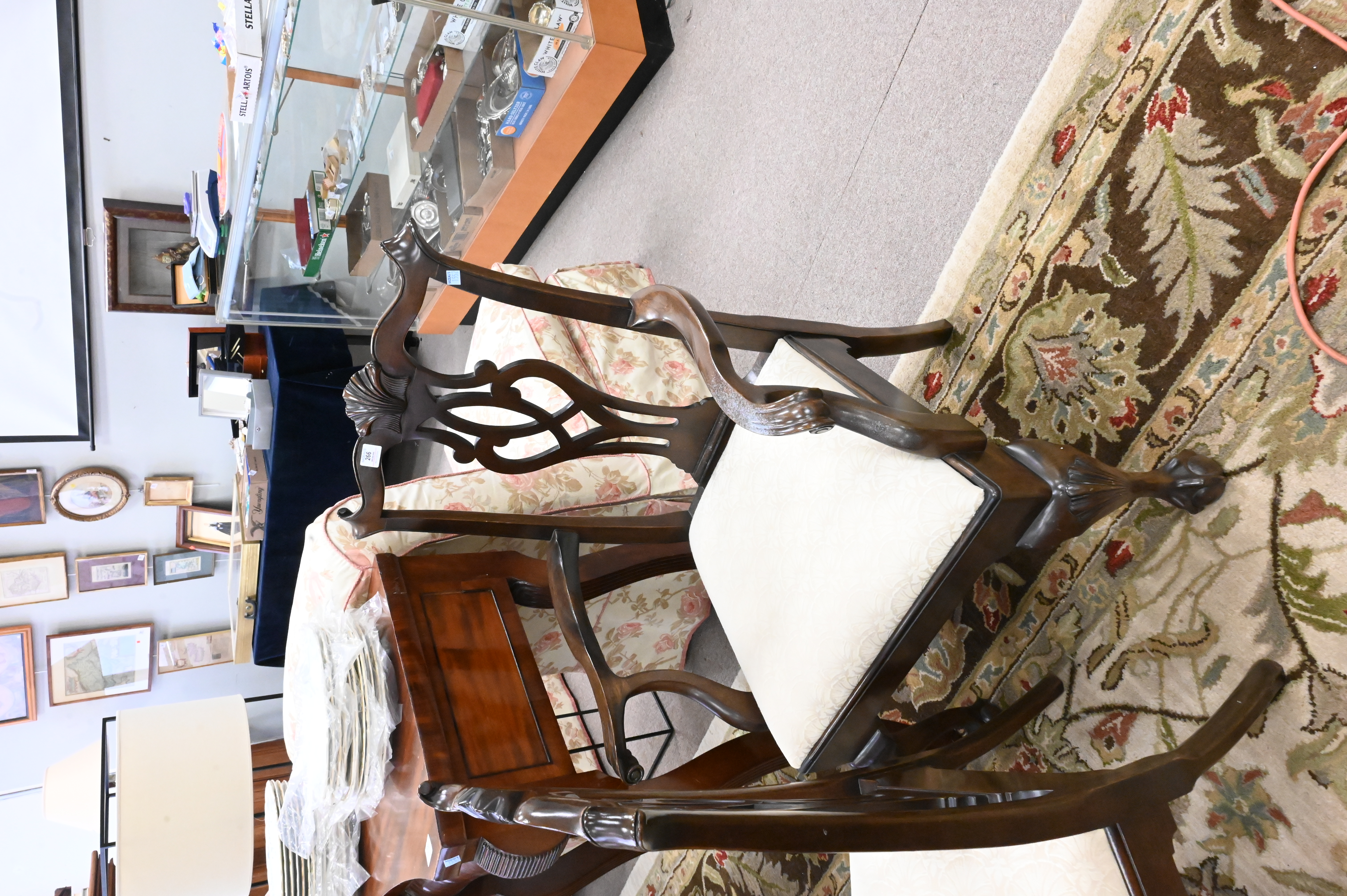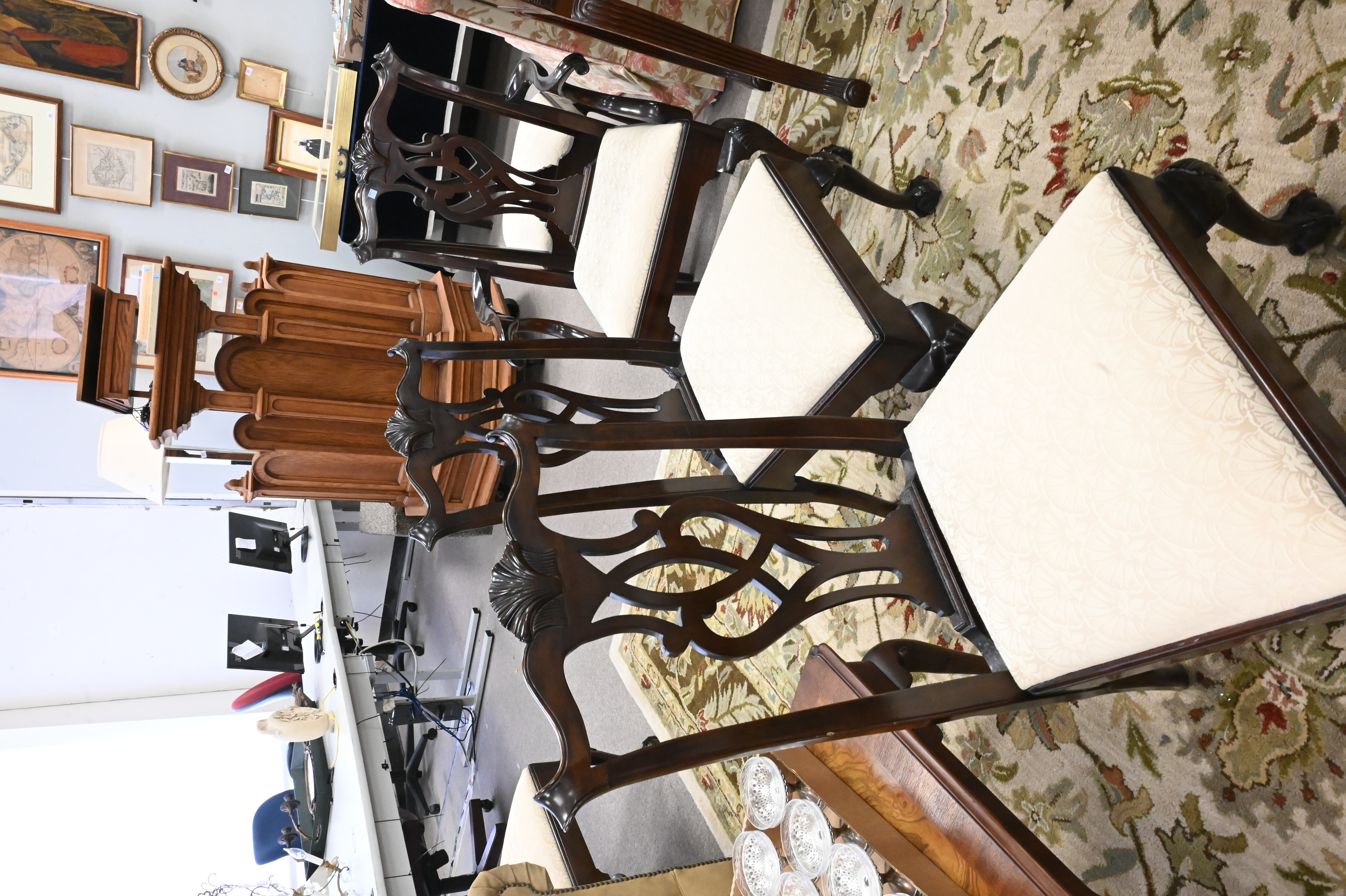 Lot 266: Set of 10 Mahogany Stickley Chippendale Style Dining Chairs