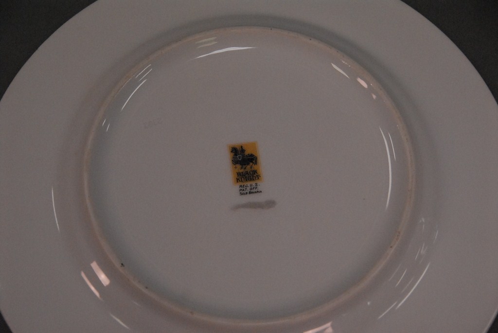 Lot 266: Set of ten Black Knight dinner plates.