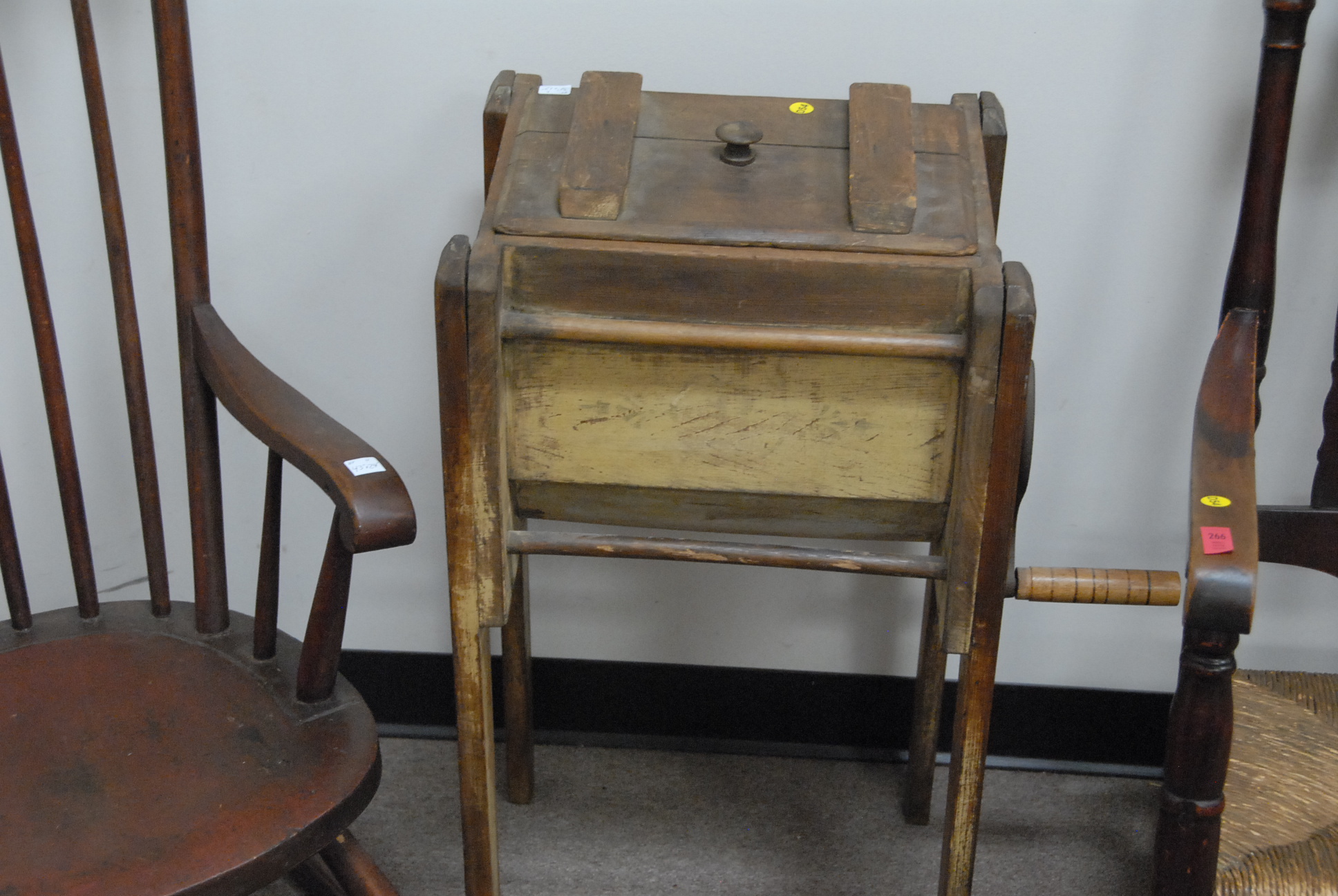 Three piece lot to include two rockers and a butter churn