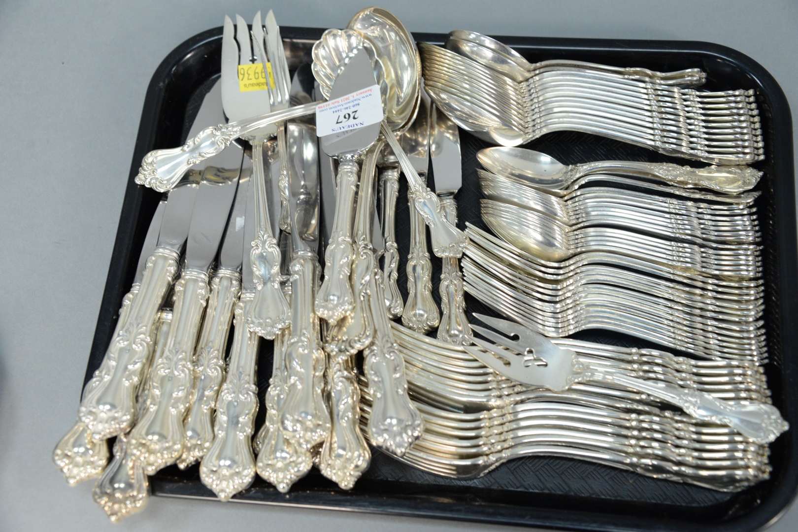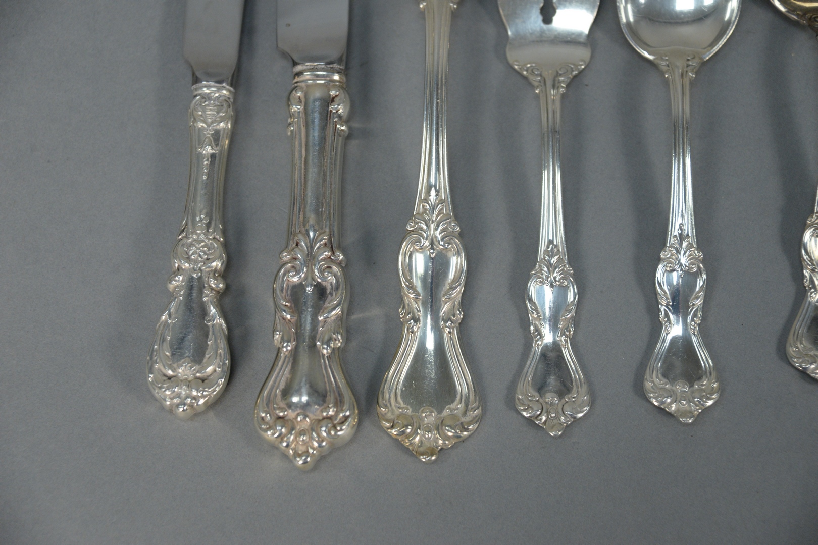 Lot 267: 101 Piece Reed and Barton Sterling Silver Flatware Set to include 15 dinner forks,15 knives, 15 dinner knives, 15 salad forks, 12 ta…
