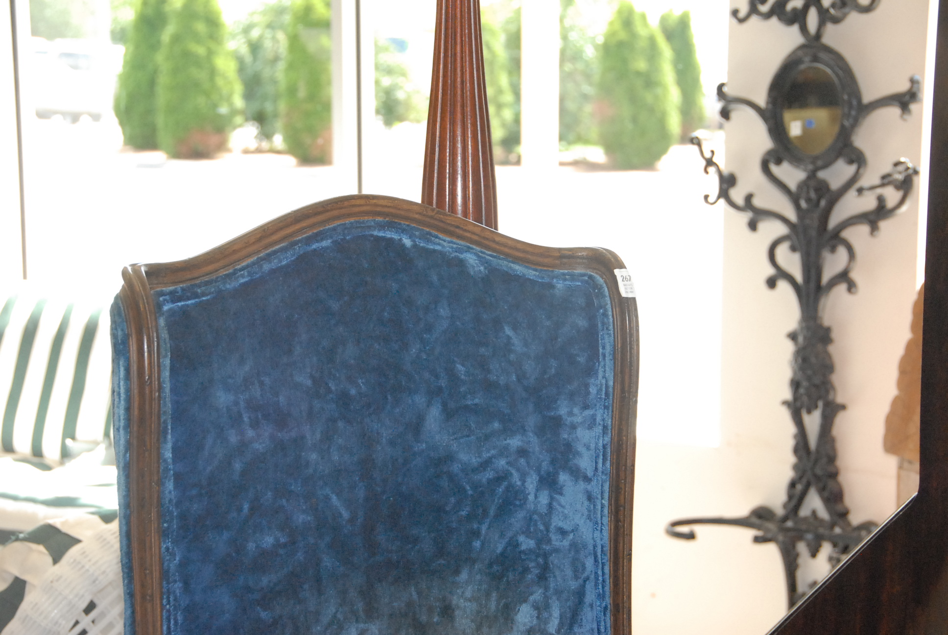 Blue upholstered chair with high back