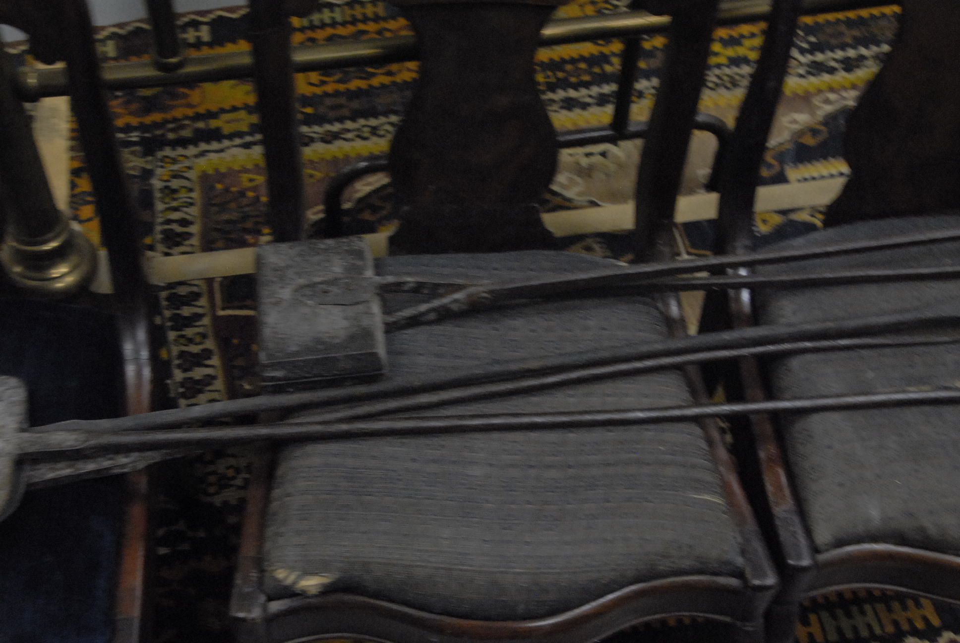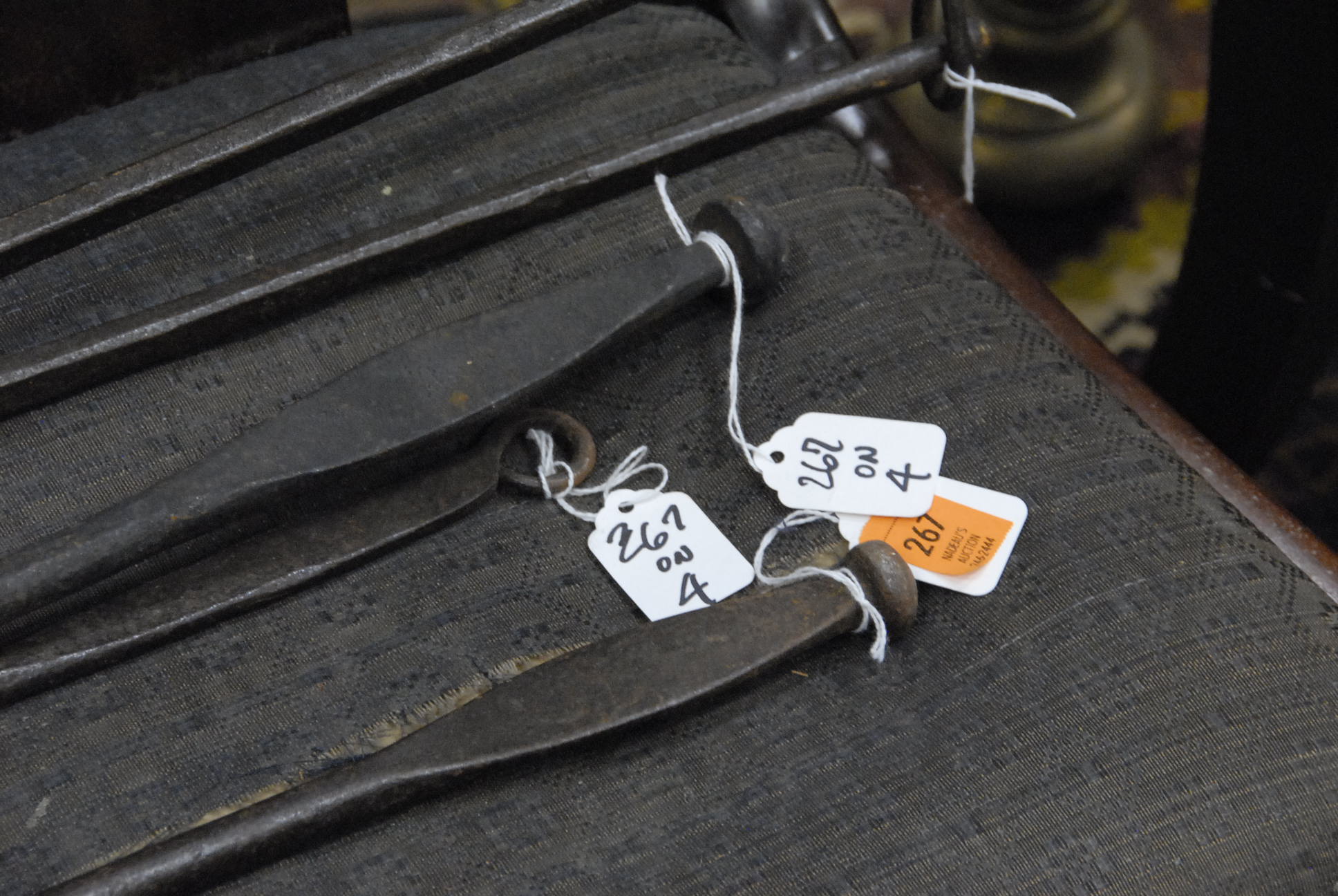 Four piece primitive iron lot three peels and a waffle iron to benefit the War Office on Lebanon Green CT SAR