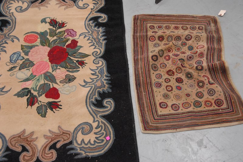 Four throw rugs, three hooked including two with marble designs 3′ x 4′, 2′ x 3′ etc.