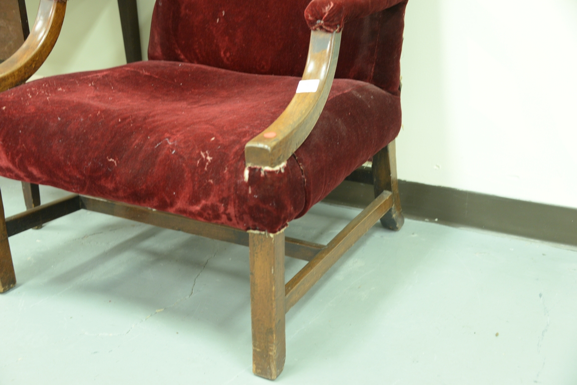 Lot 267: George III mahogany library open armchair on squared legs, 18th century. Provenance: Collection of Anne Jones Willis and the late Jo…