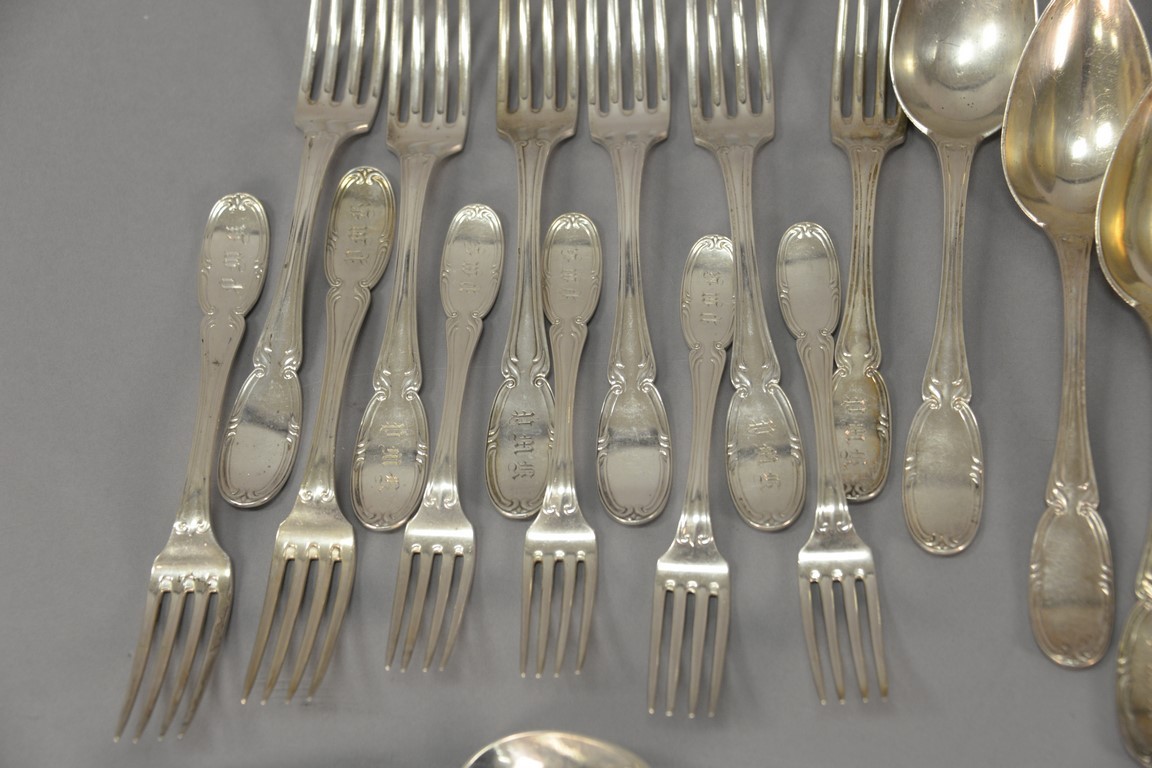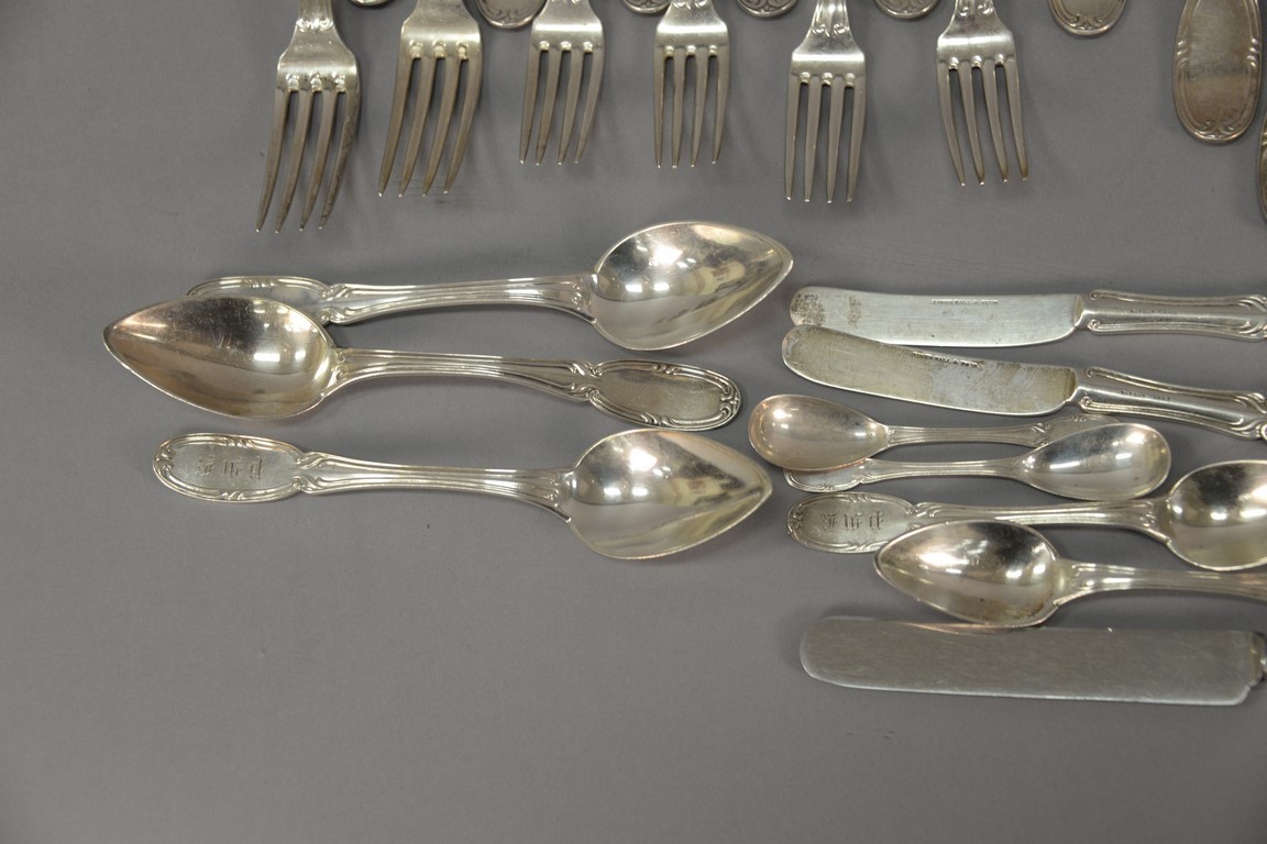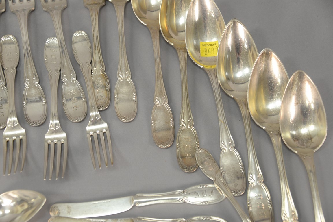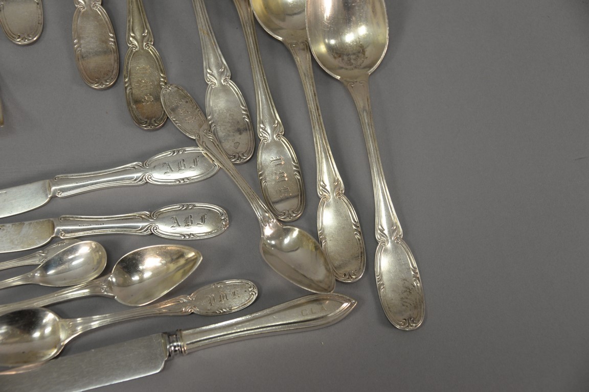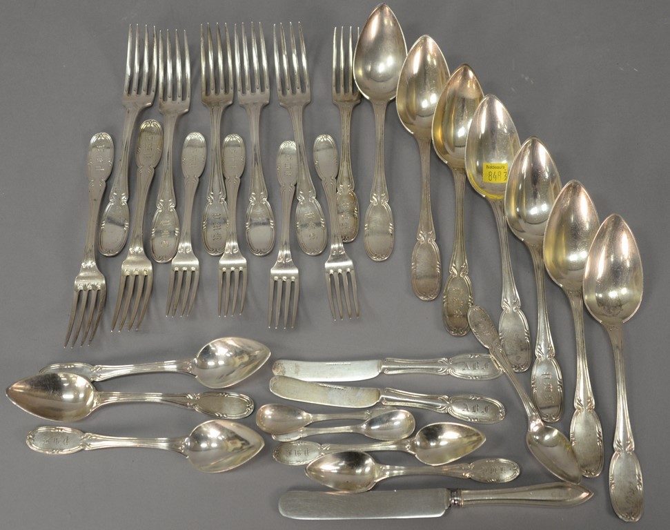 Jones Ball 1847 silver flatware set. 30 total pieces, 51.39 troy ounces