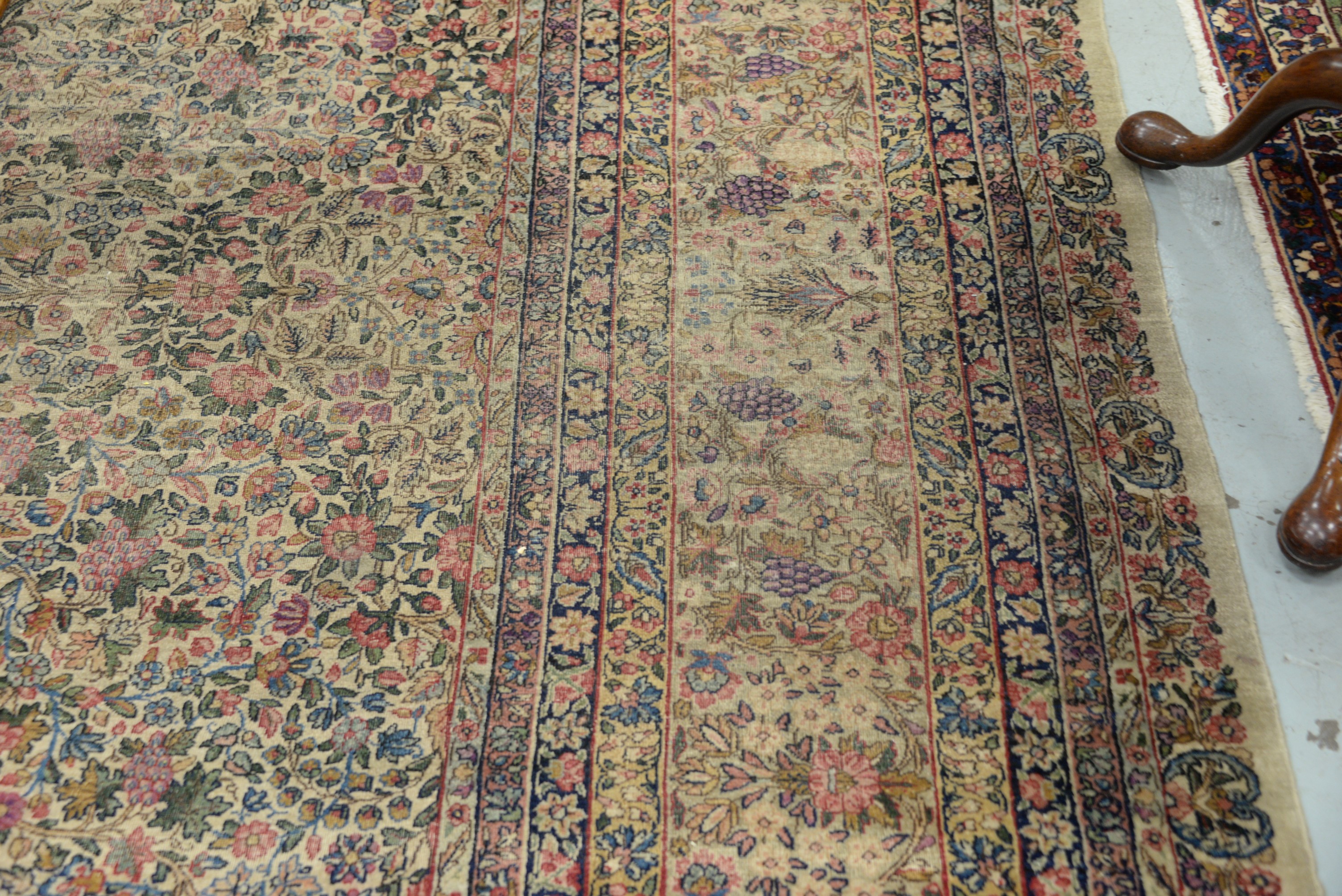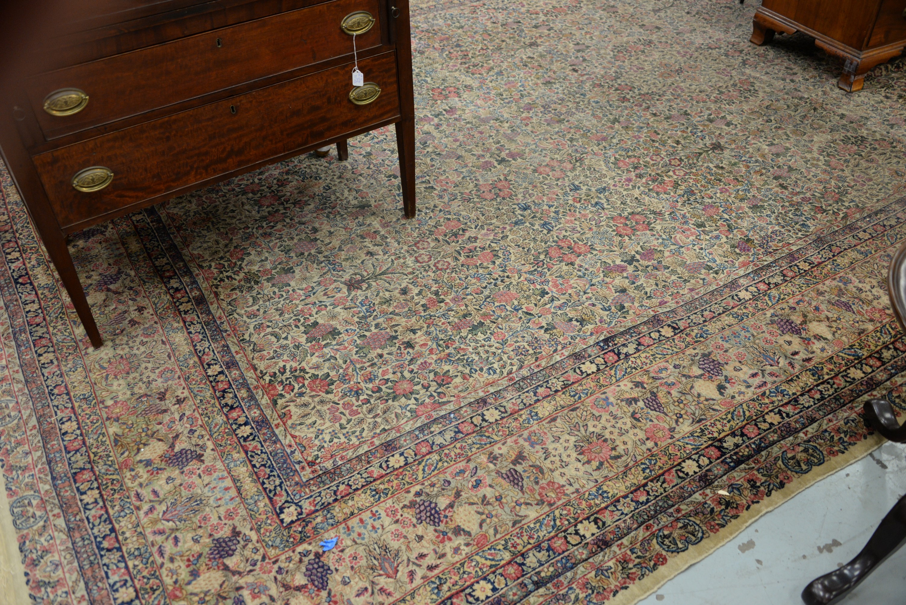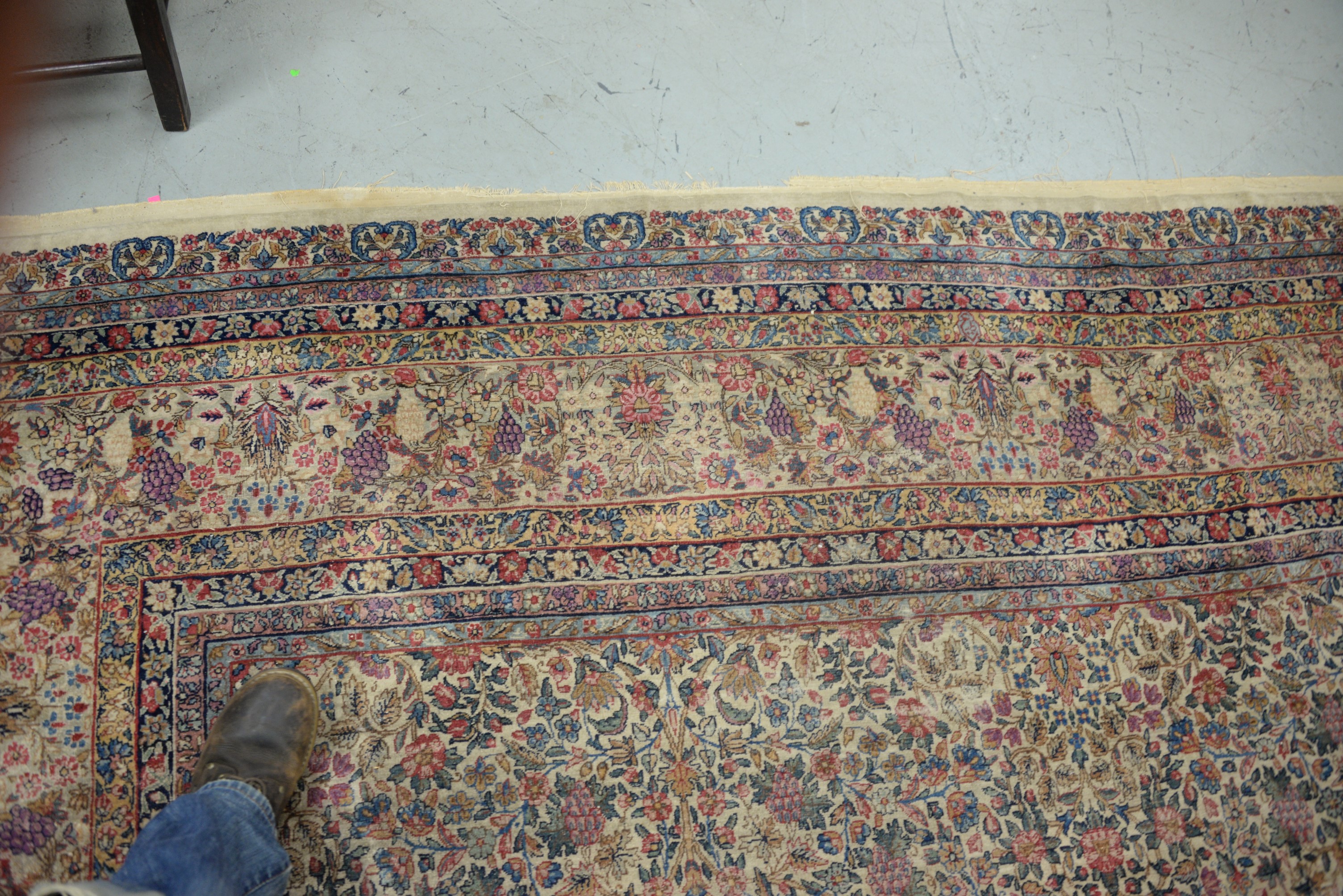 Kirman Oriental carpet wear. 11’3 x 18’11