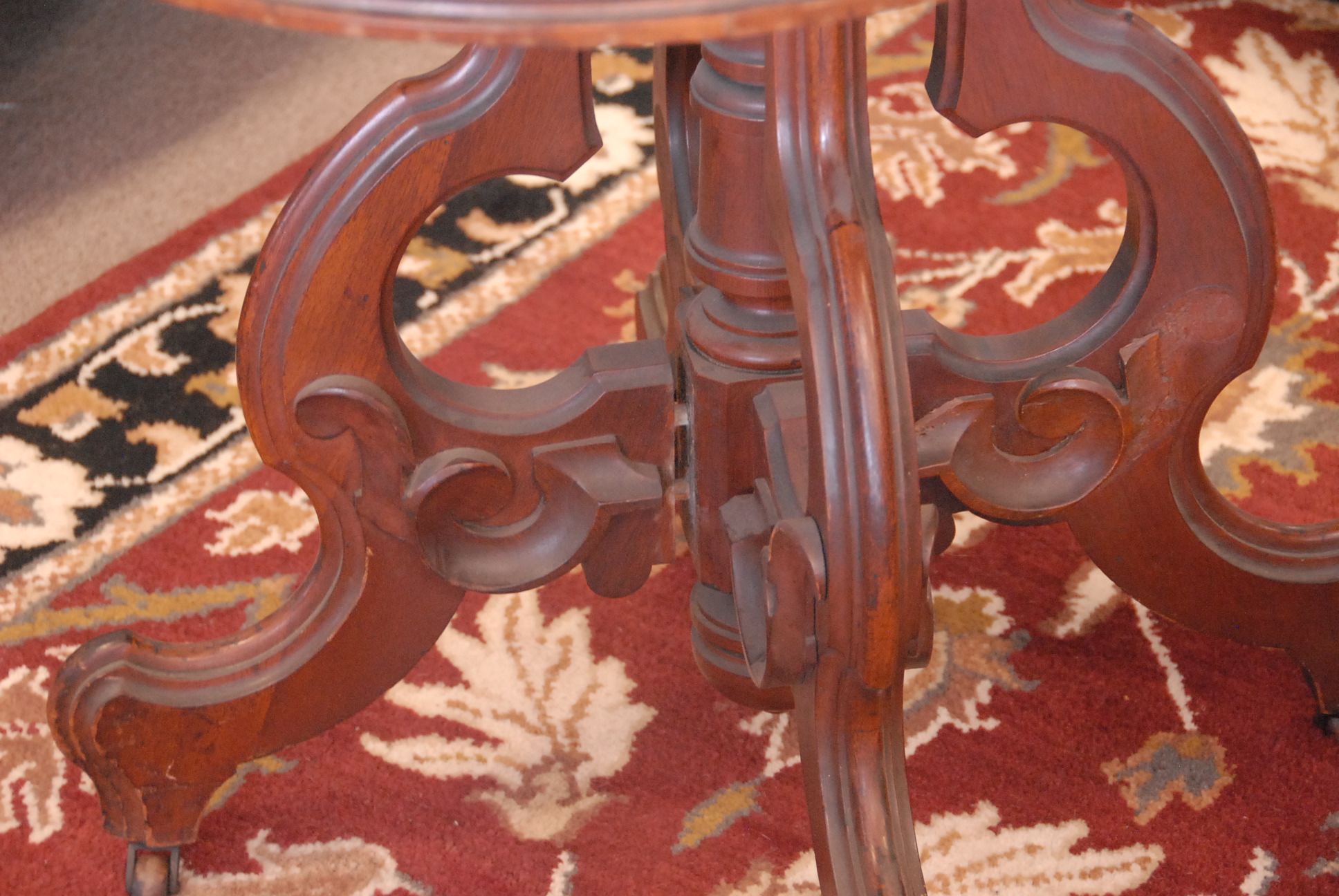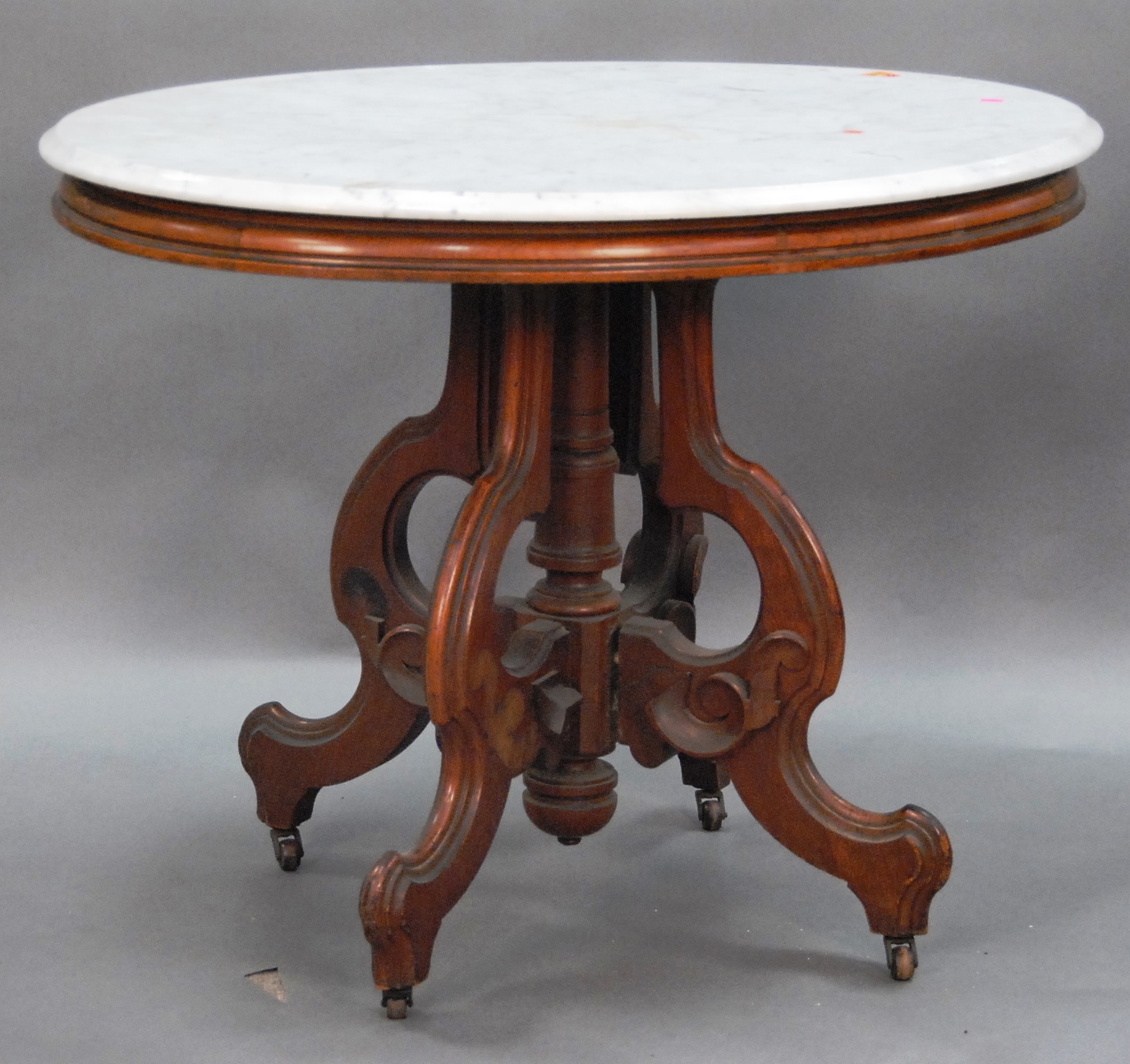 Oval Victorian marble top table, ht. 29in. top: 28 x 37.