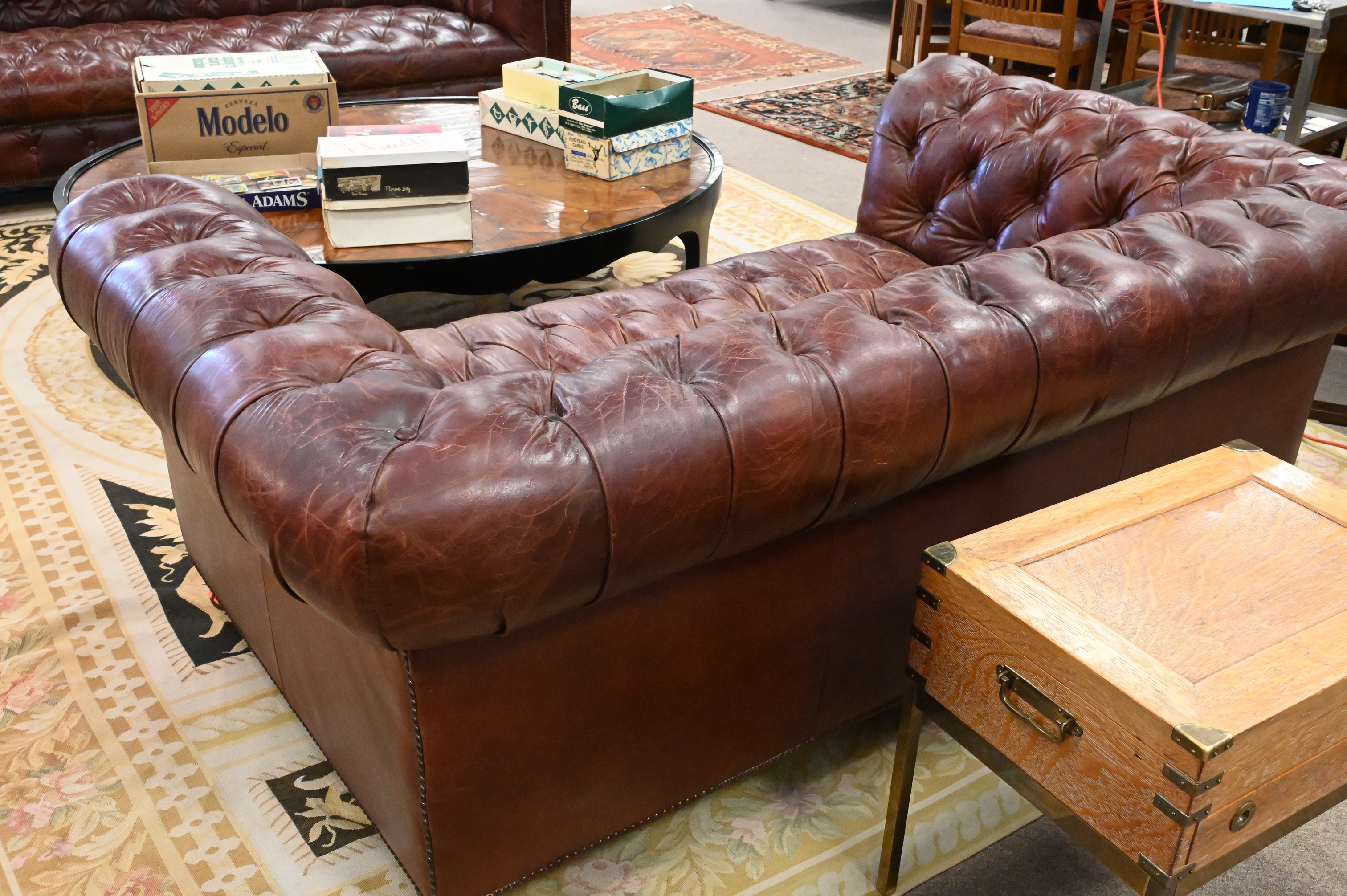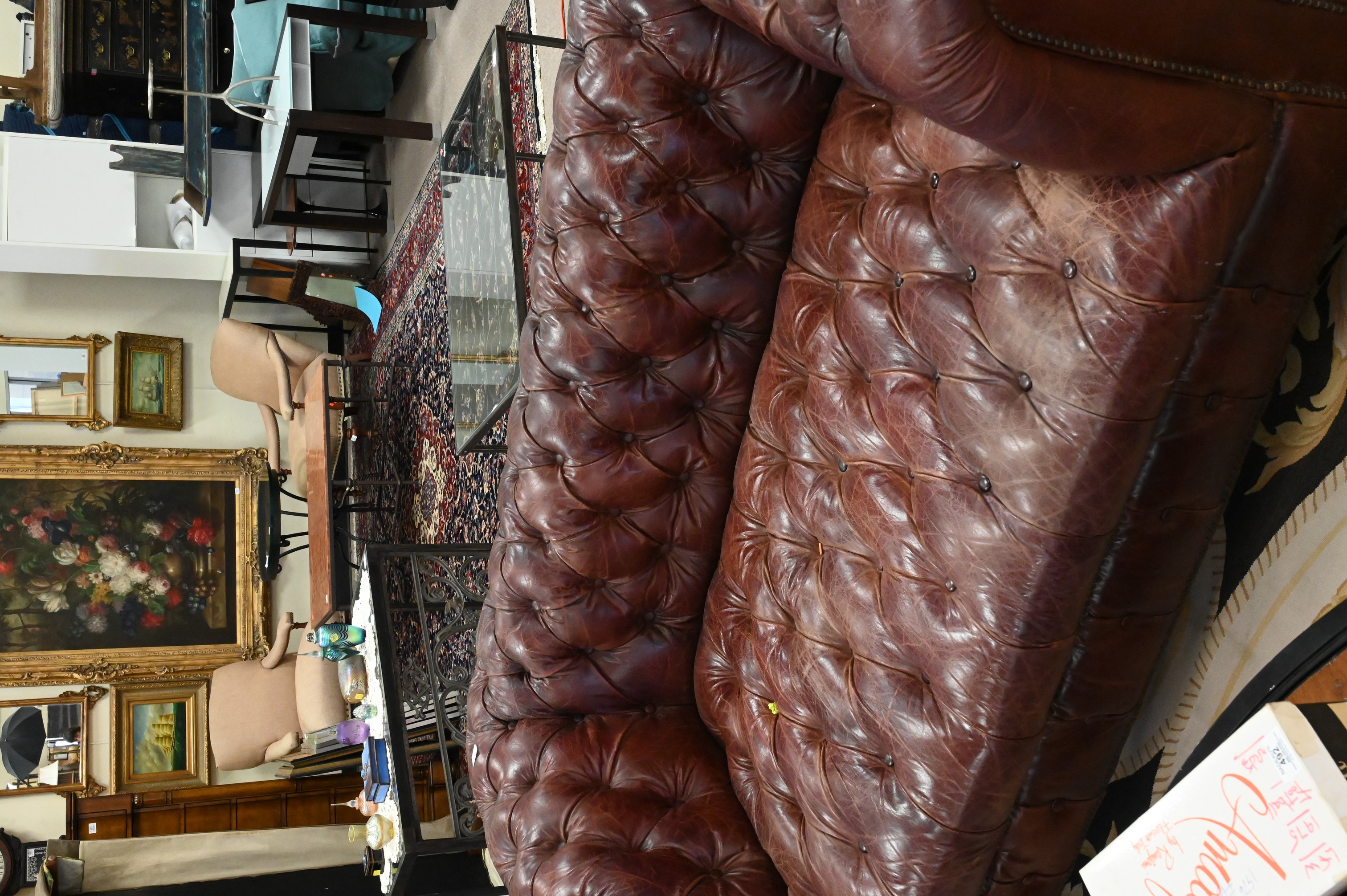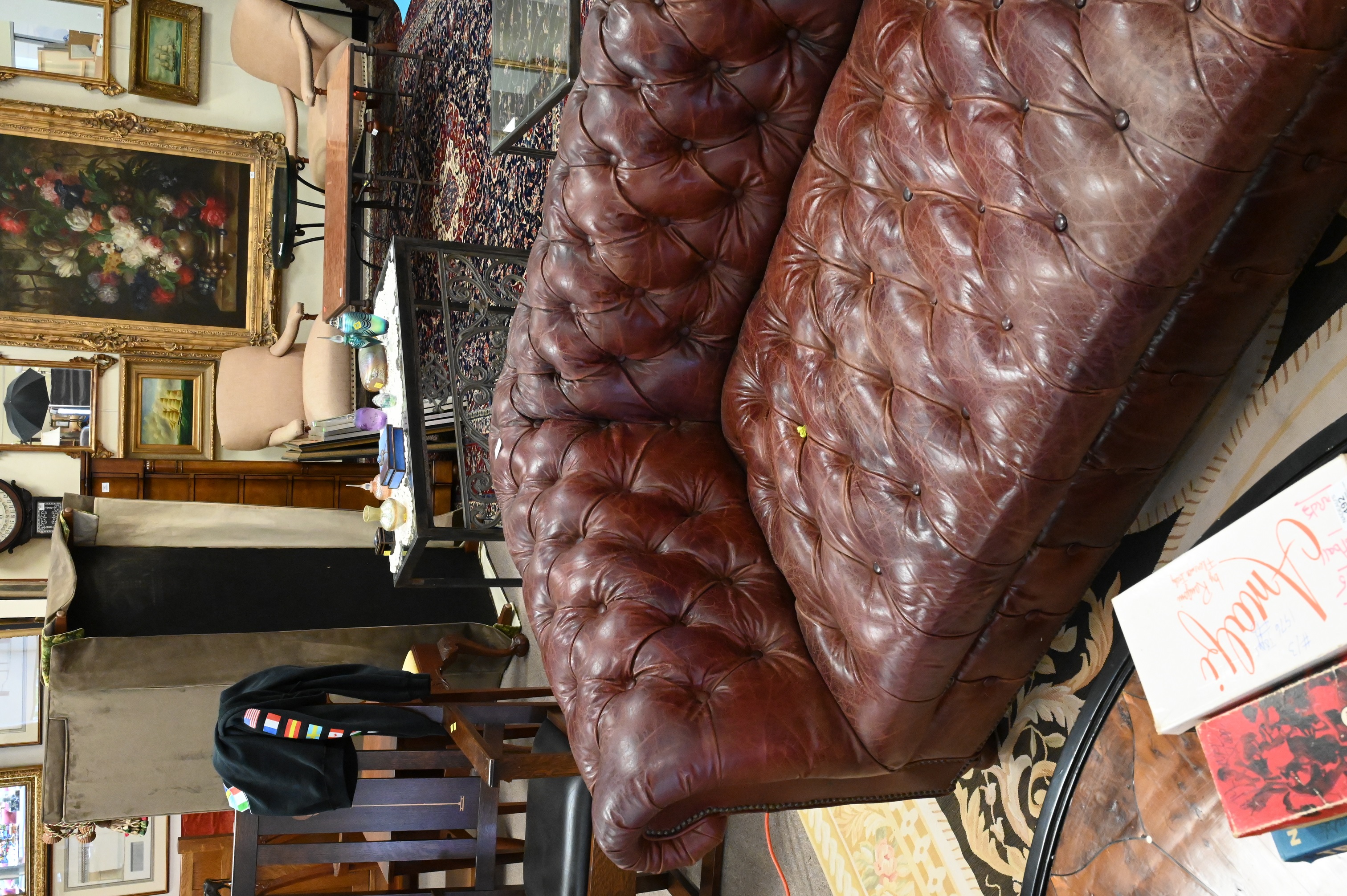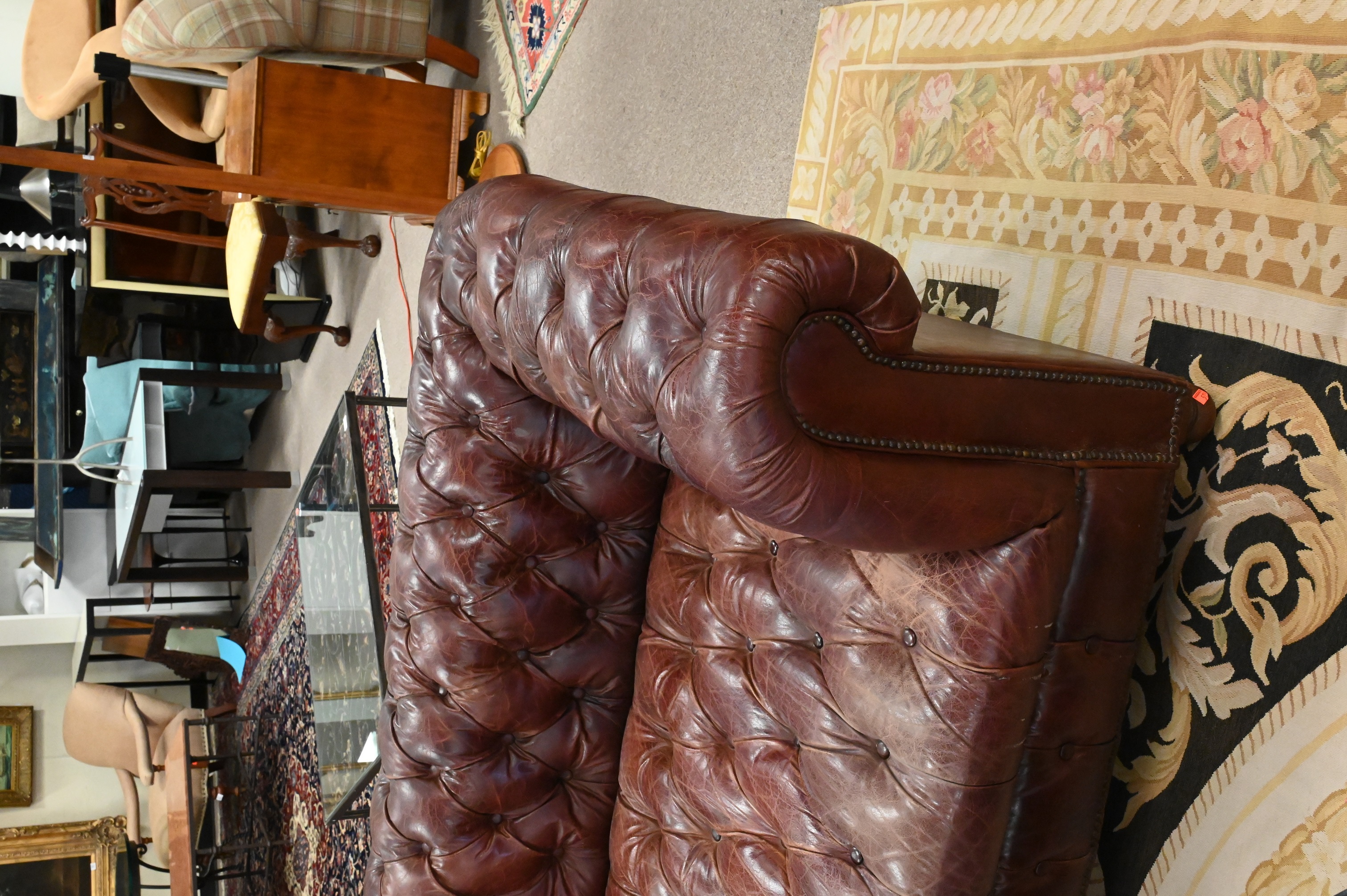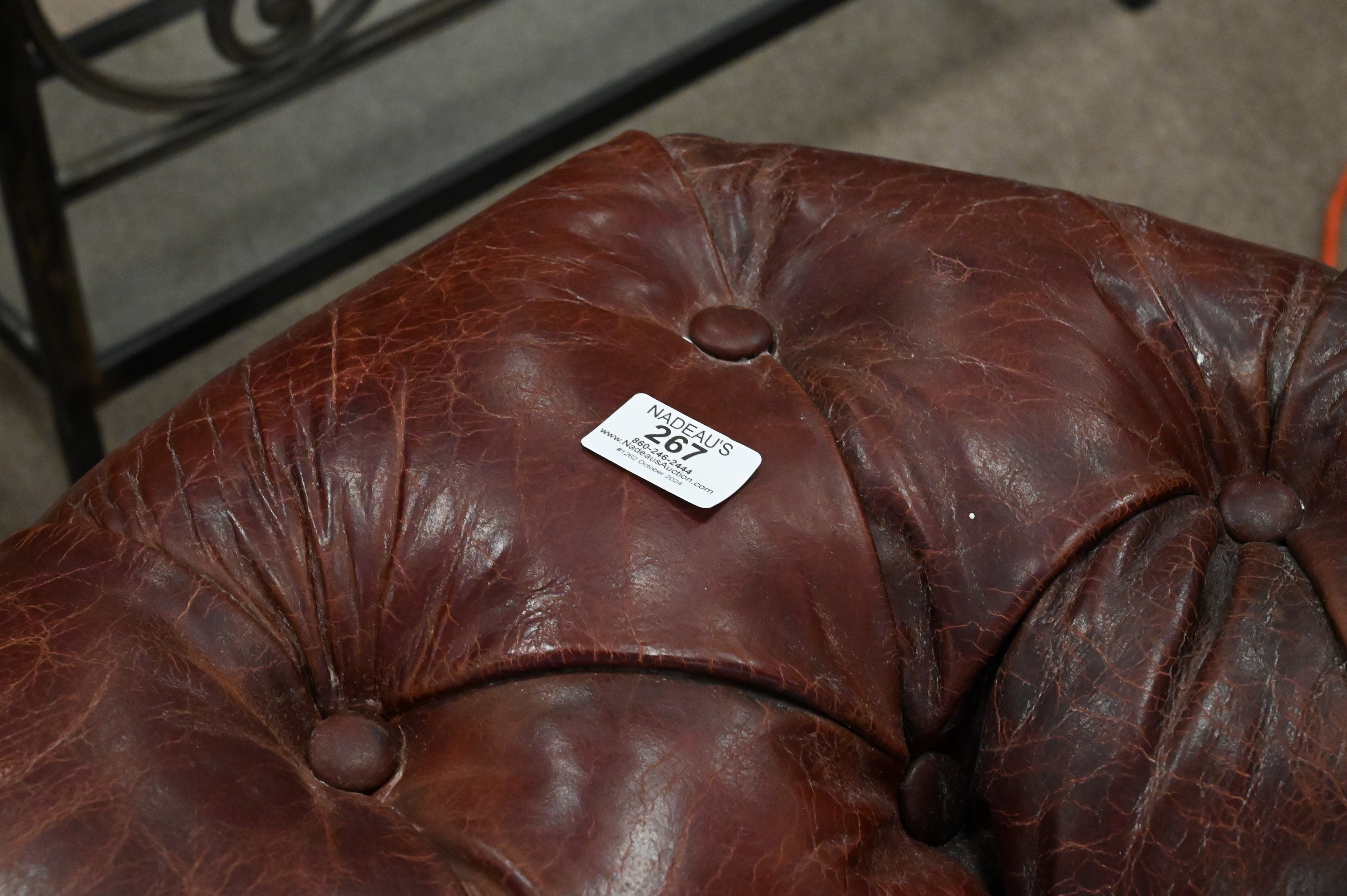Lot 267: Restoration Hardware Chesterfield Style Loveseat in Burgundy Leather