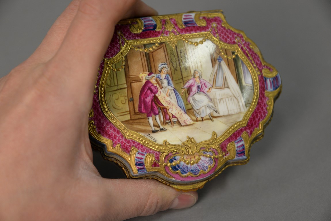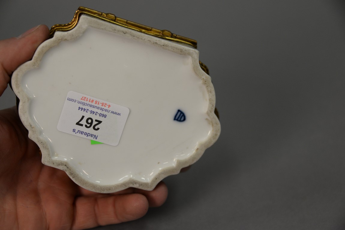 Royal Vienna hinged covered box, artist signed, high relief gold decoration.