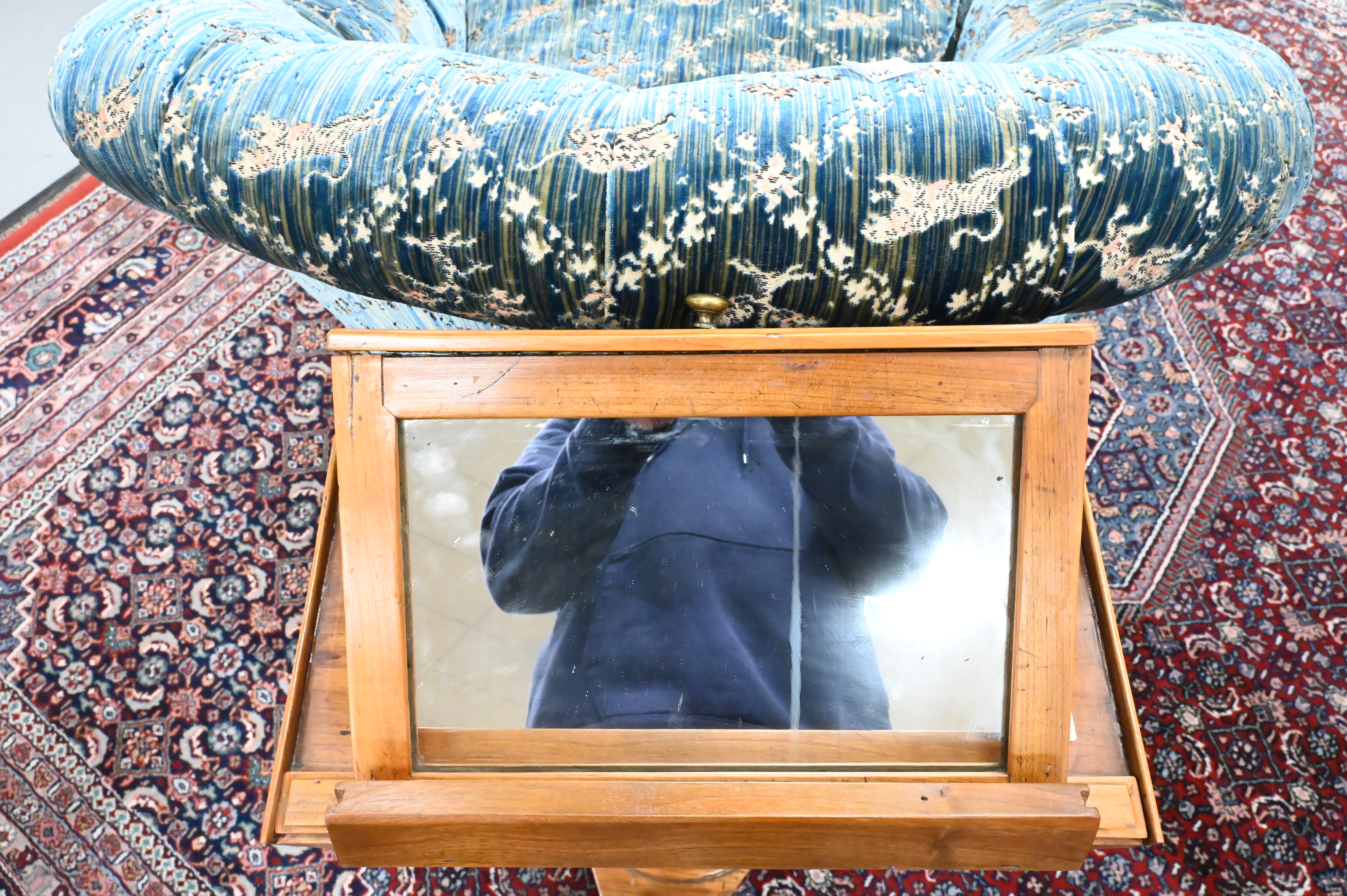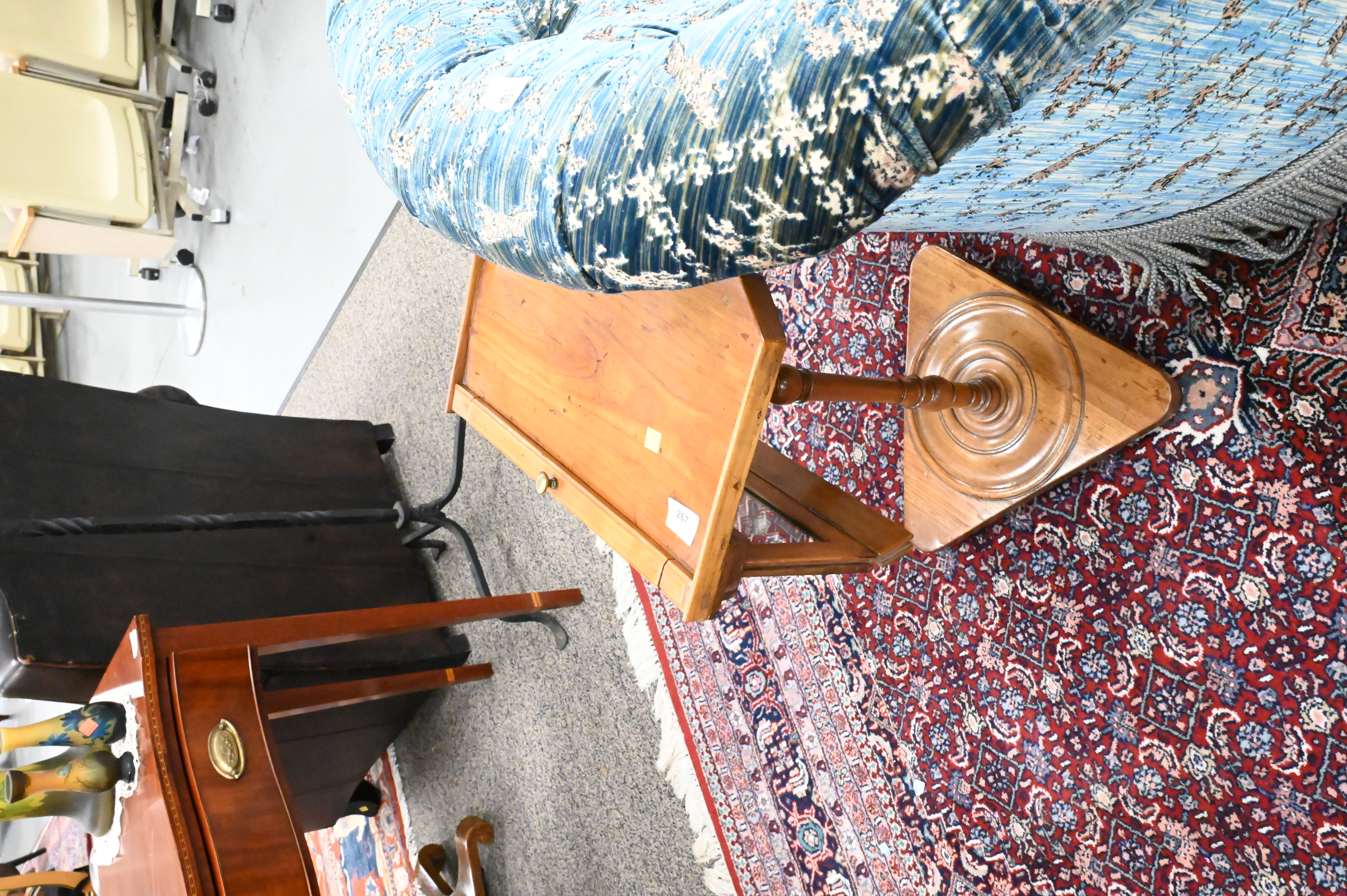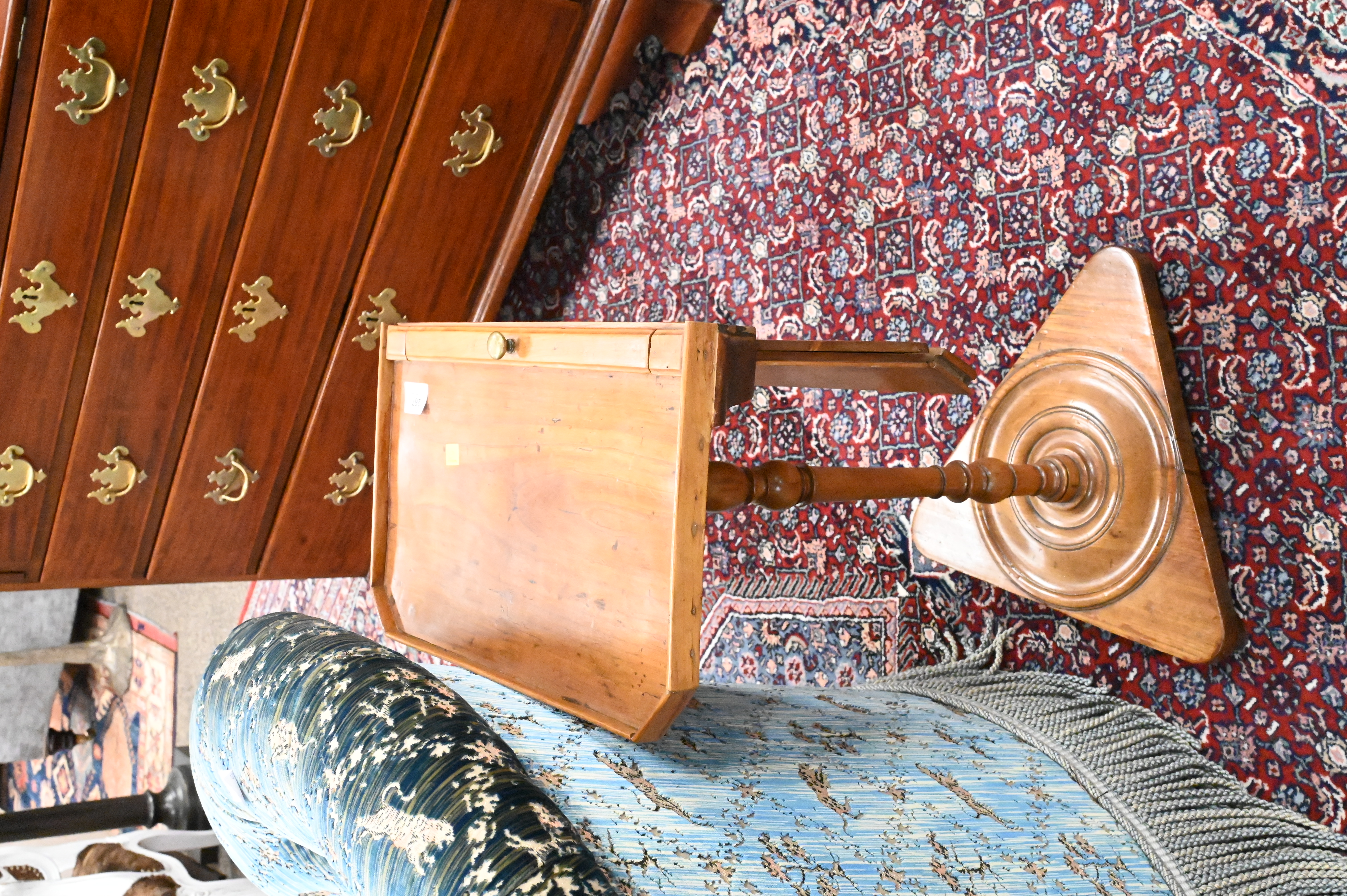 Small French Candle Stand, having slide vanity mirror top, on turned shaft on triangular base, height 25 inches.