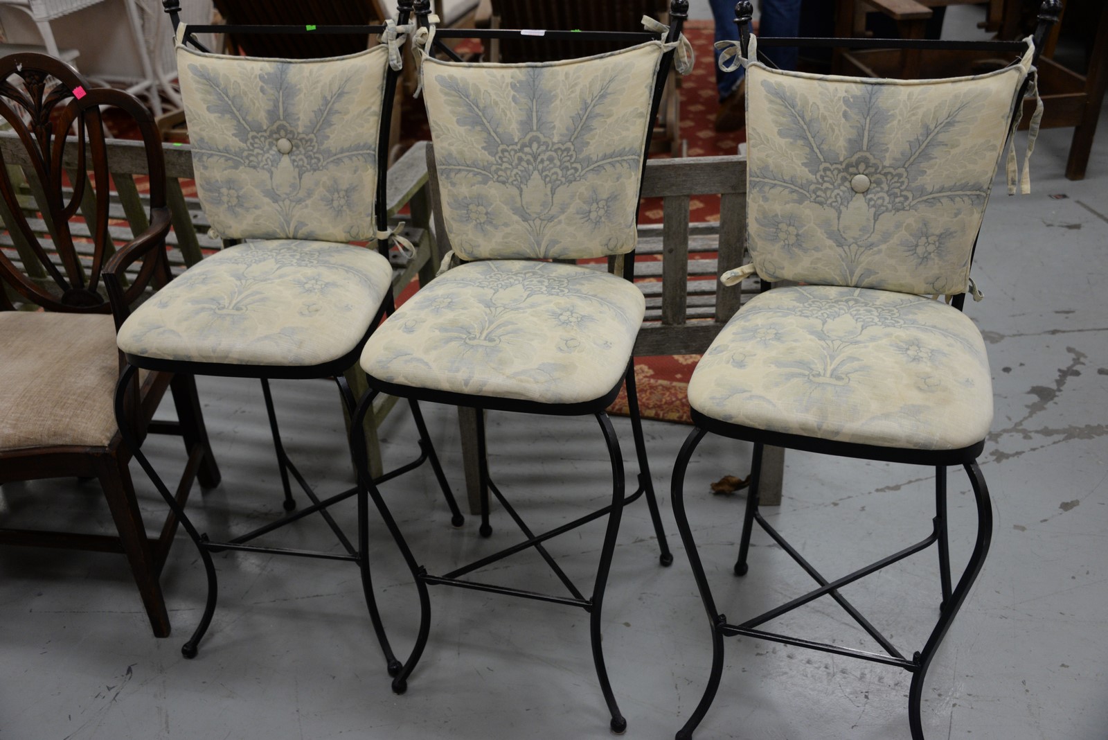 Three iron bar stools. total ht. 42 1/2 in. seat ht. 26 in.
