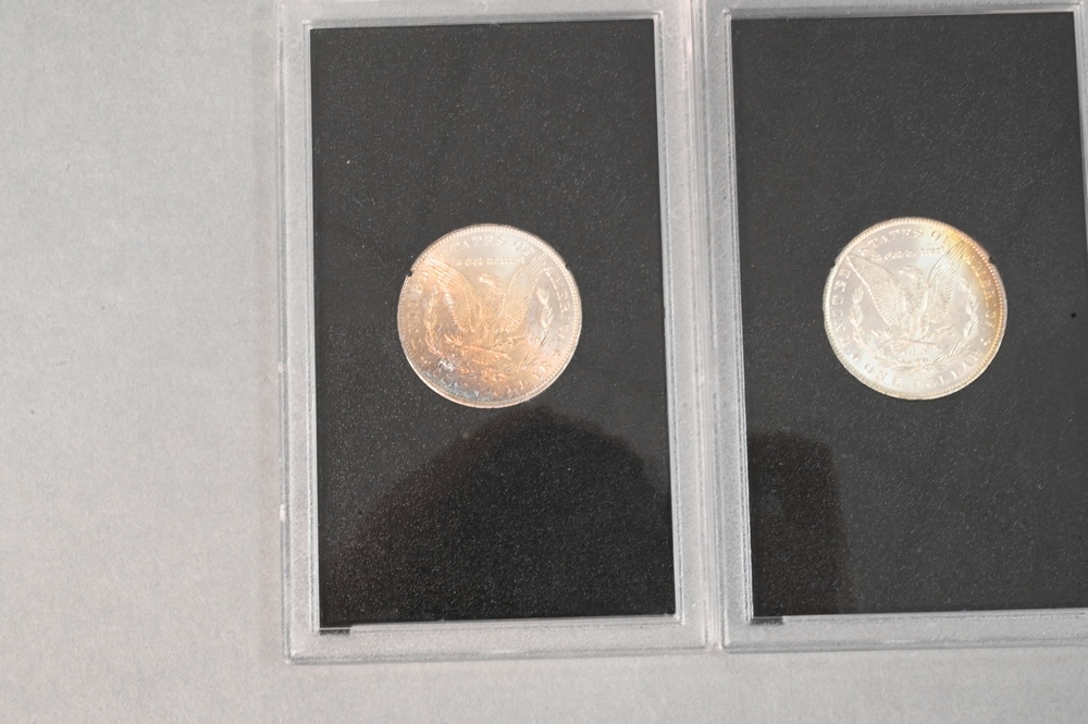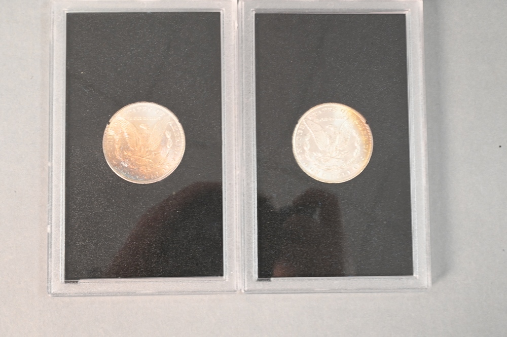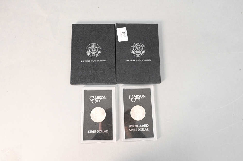 Lot 267: Two 1882 Carson City Morgan Silver Dollars.