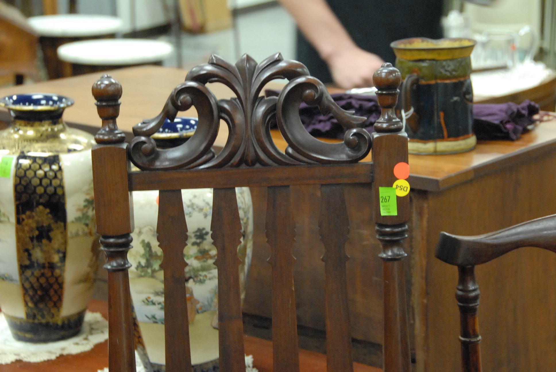 Two chairs to include a Queen Anne side chair, and a reproduction banister back chair.