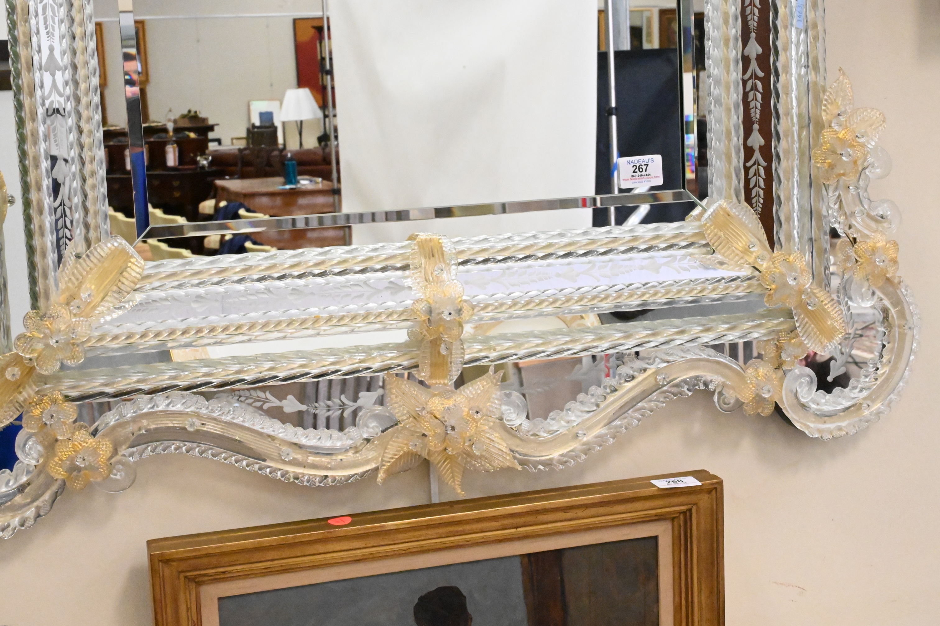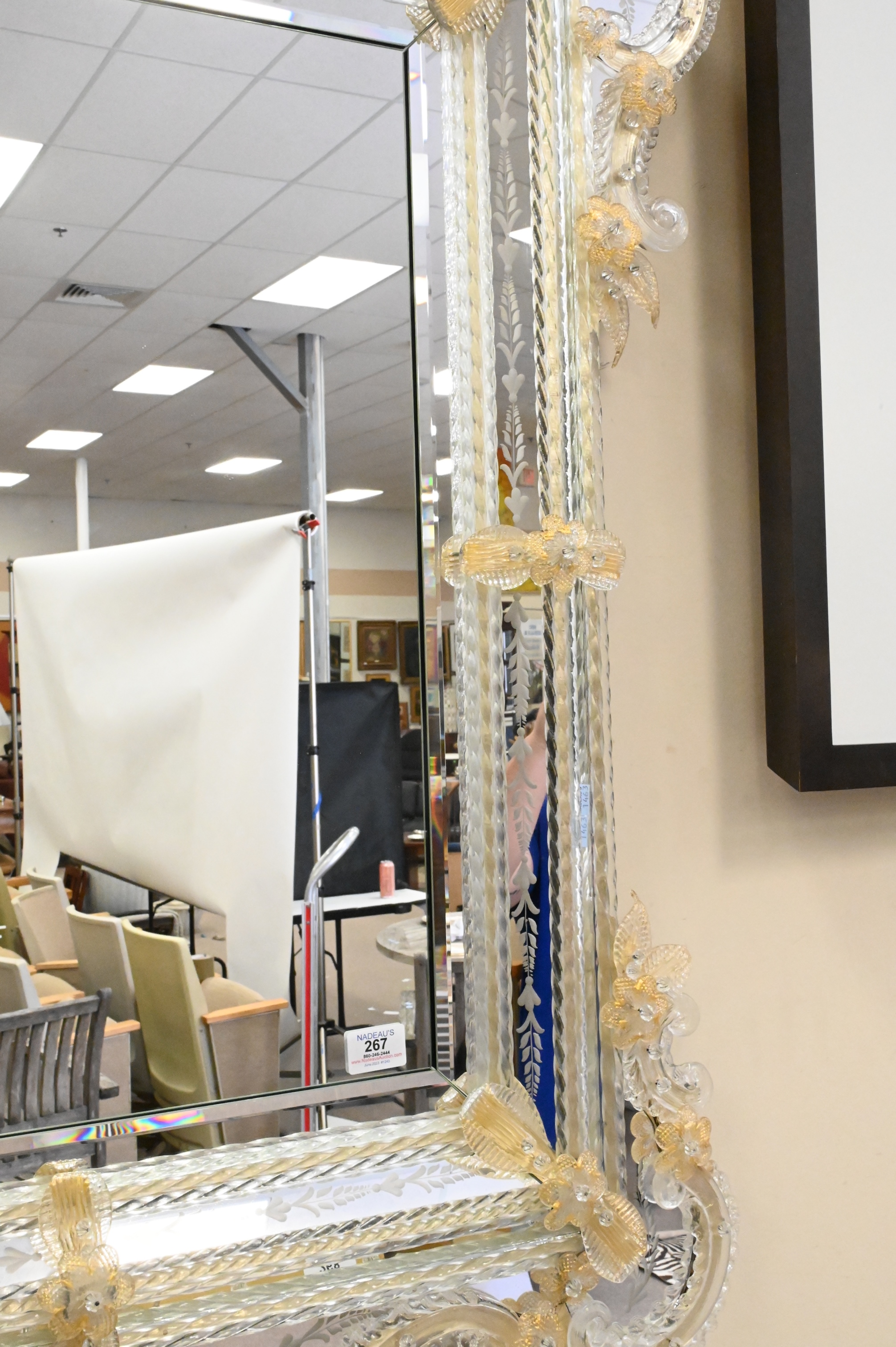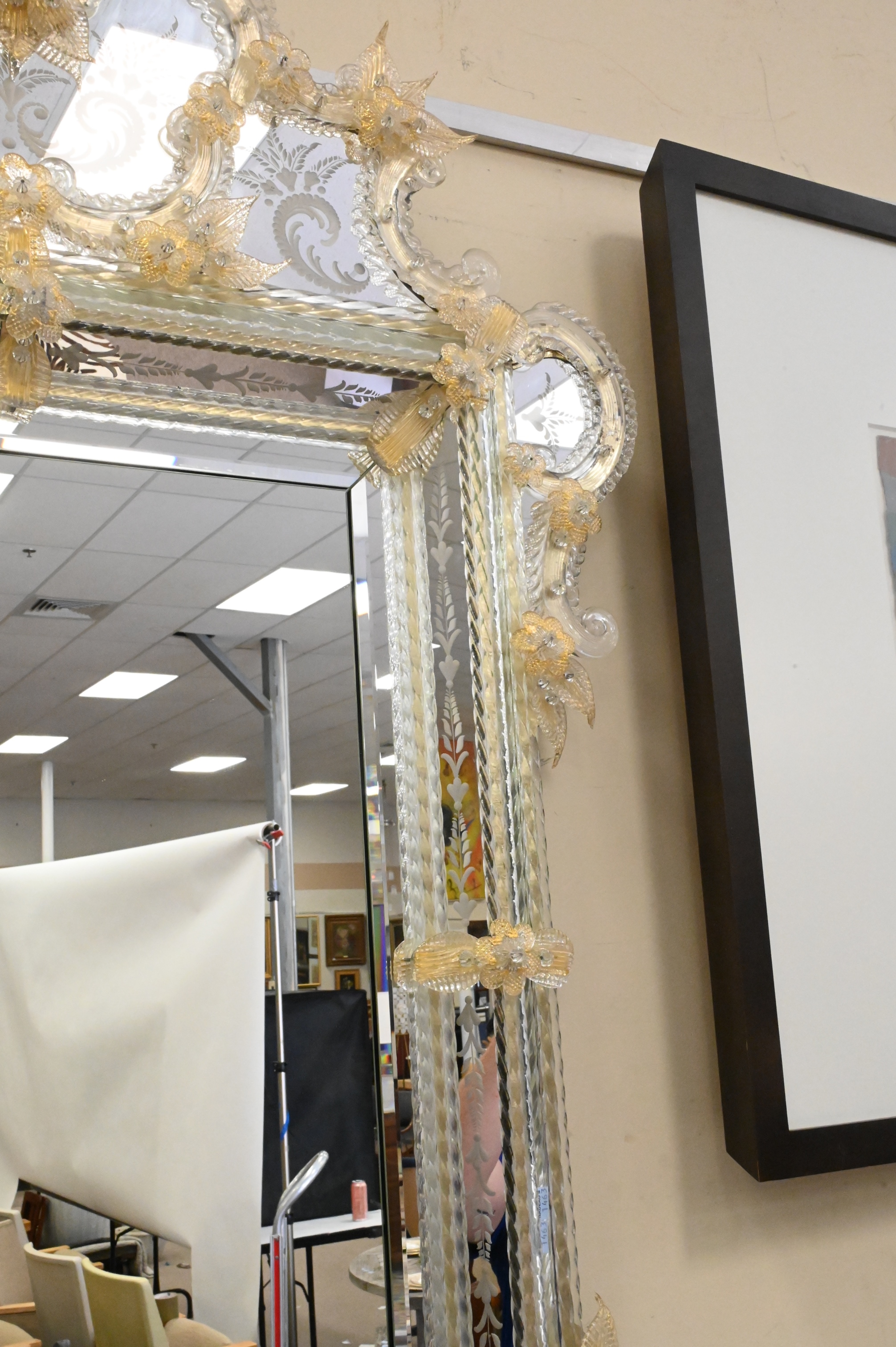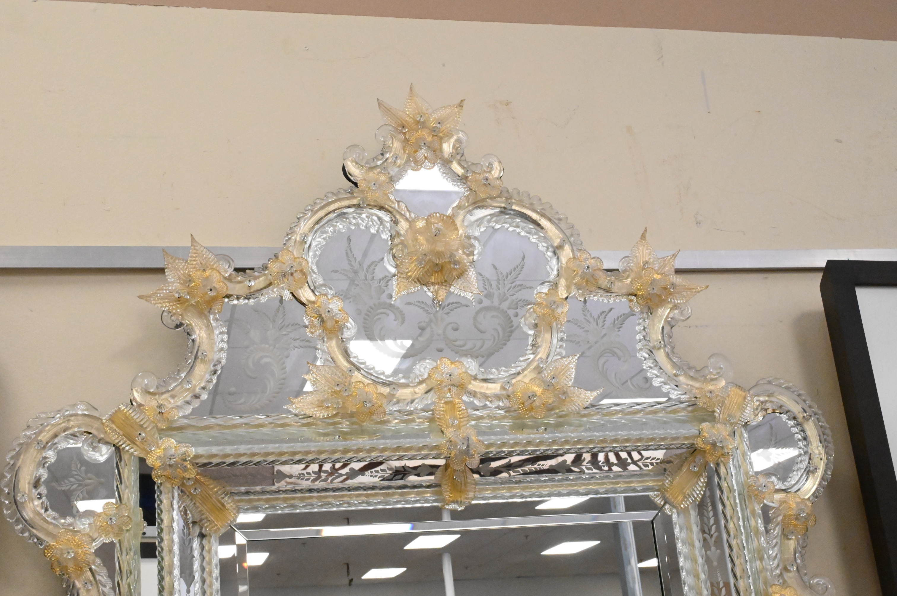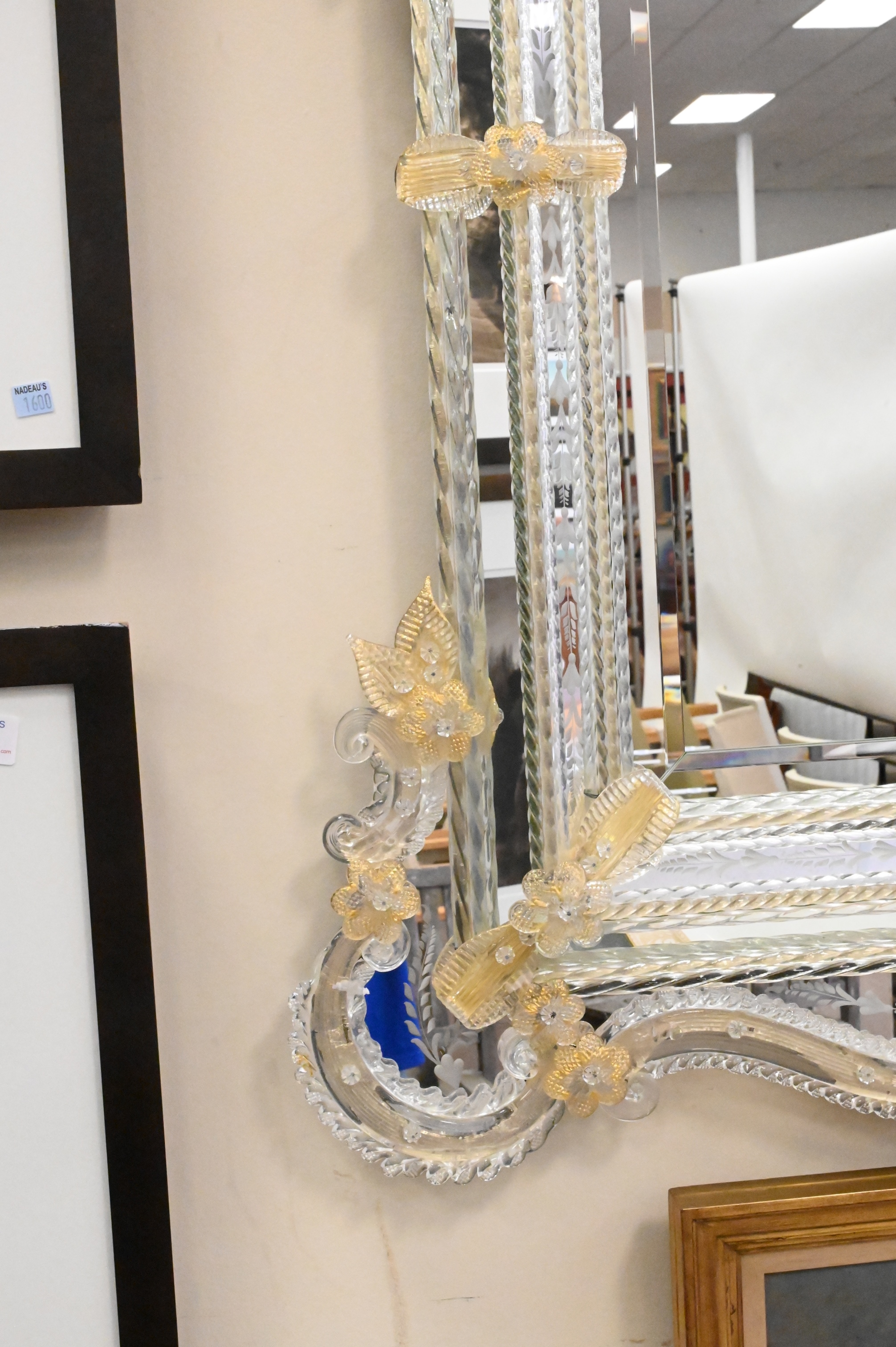 Venetian Mirror, with gilt murano glass flowers and leaves, height 56 inches, width 35 inches