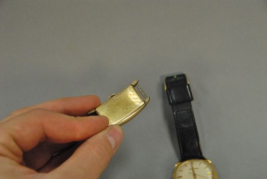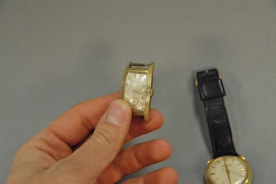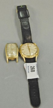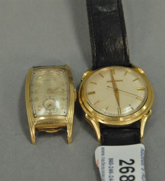 Lot 268: 14k gold Accutron mens wristwatch and a 14k gold Hamilton rectangular mans wristwatch