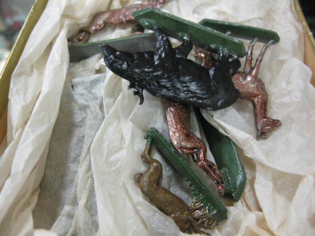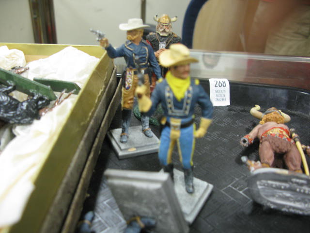 Group of lead figures to include three cowboy figures, group of deer and animal figures and misc. figures