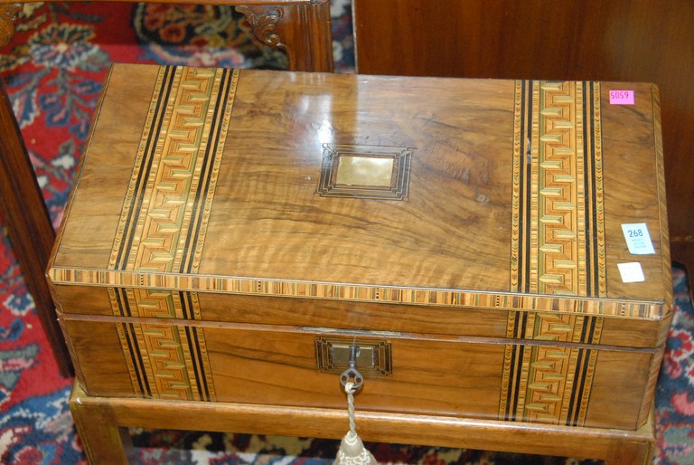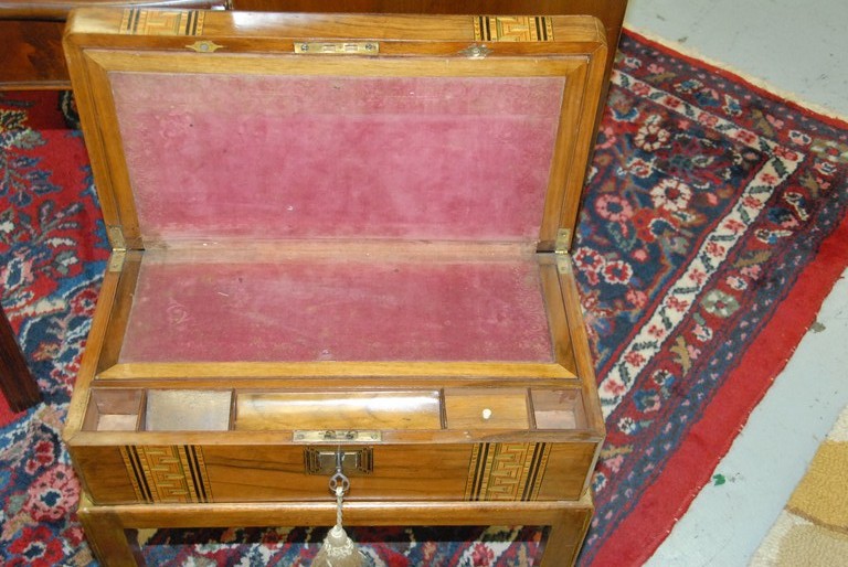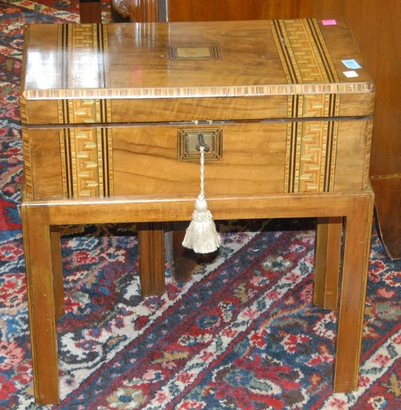 Lot 268: Inlaid lap desk on stand, ht. 21in. wd. 20in.