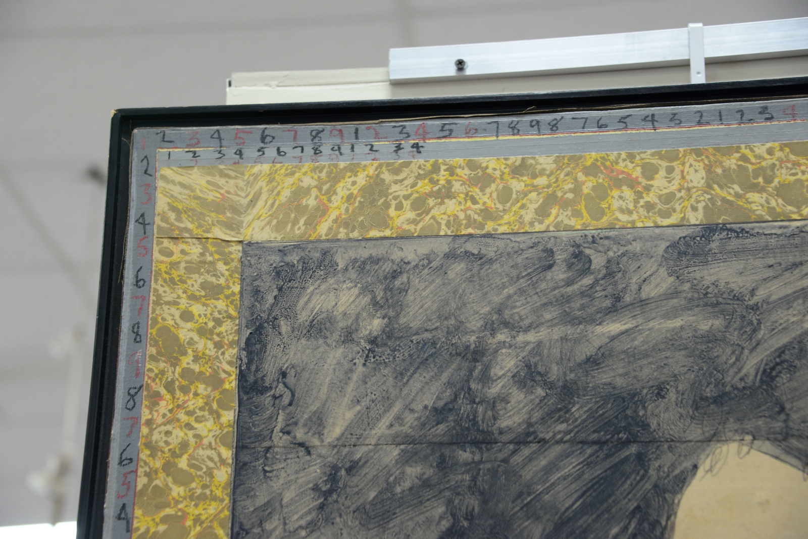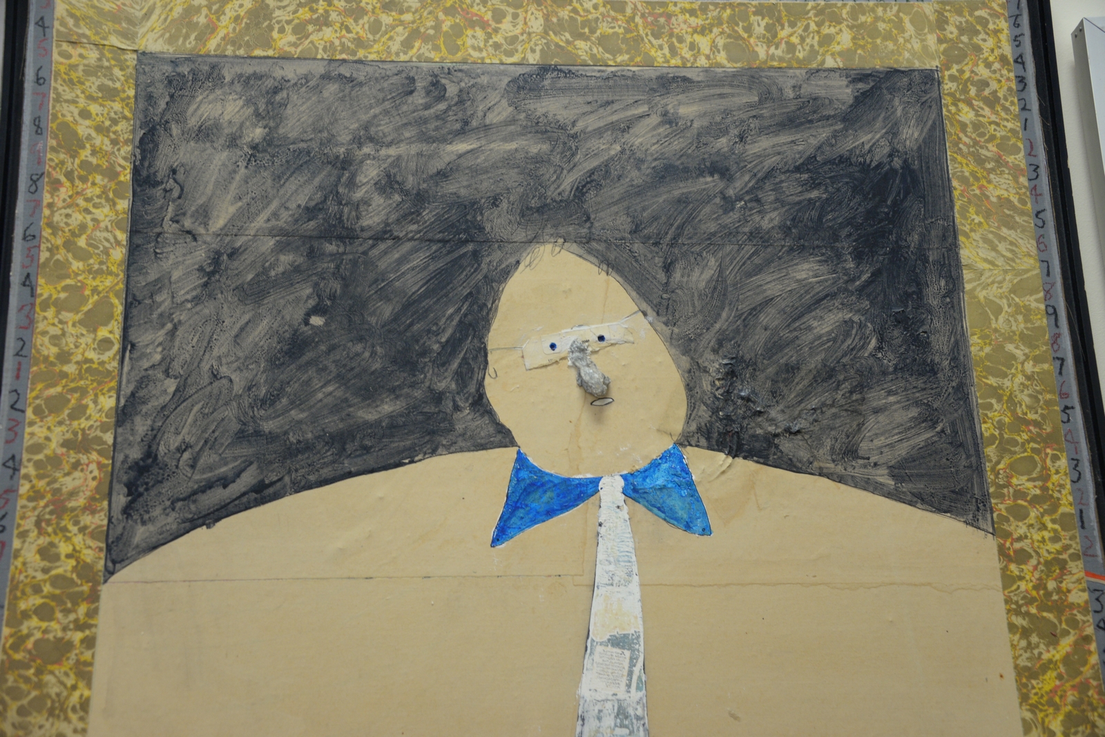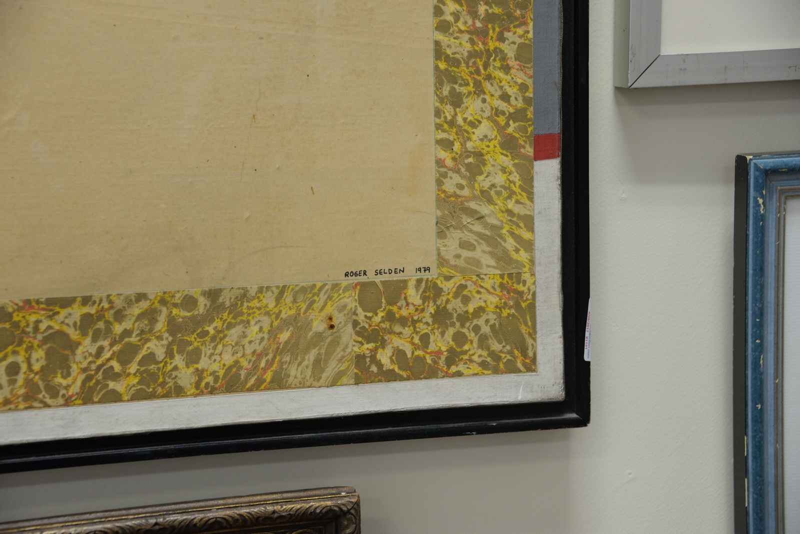 Roger Seldon b. 1945 acrylic and collage on canvas Milano 1979, signed lower right Roger Selden 1979. 40 x 32