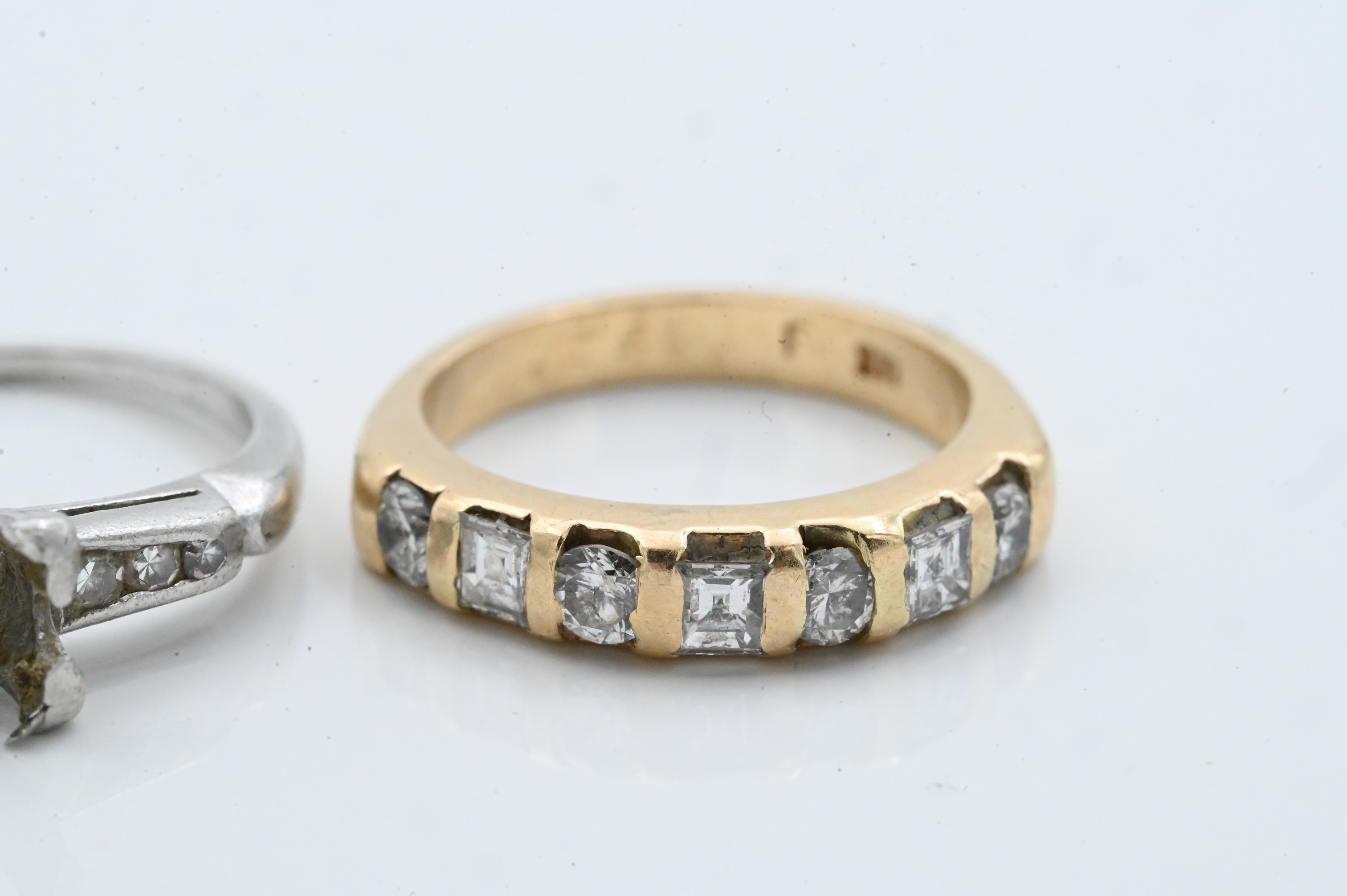 14K yellow gold and diamond half eternity rings set with alternating