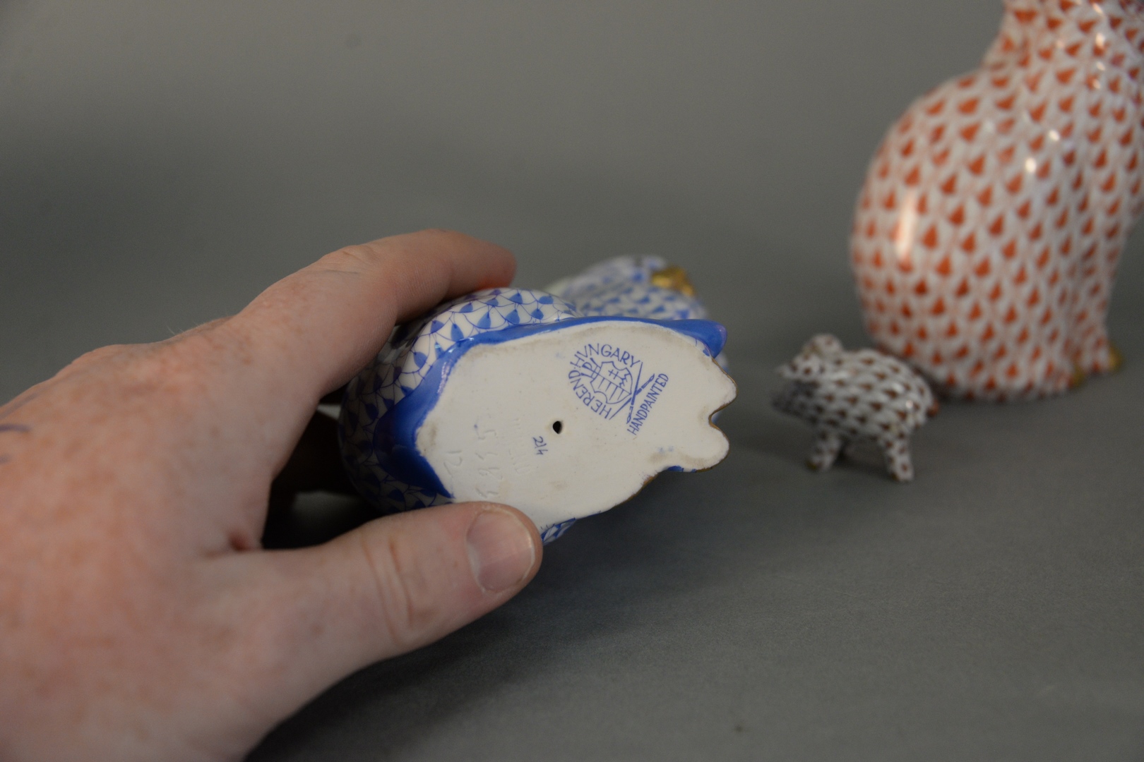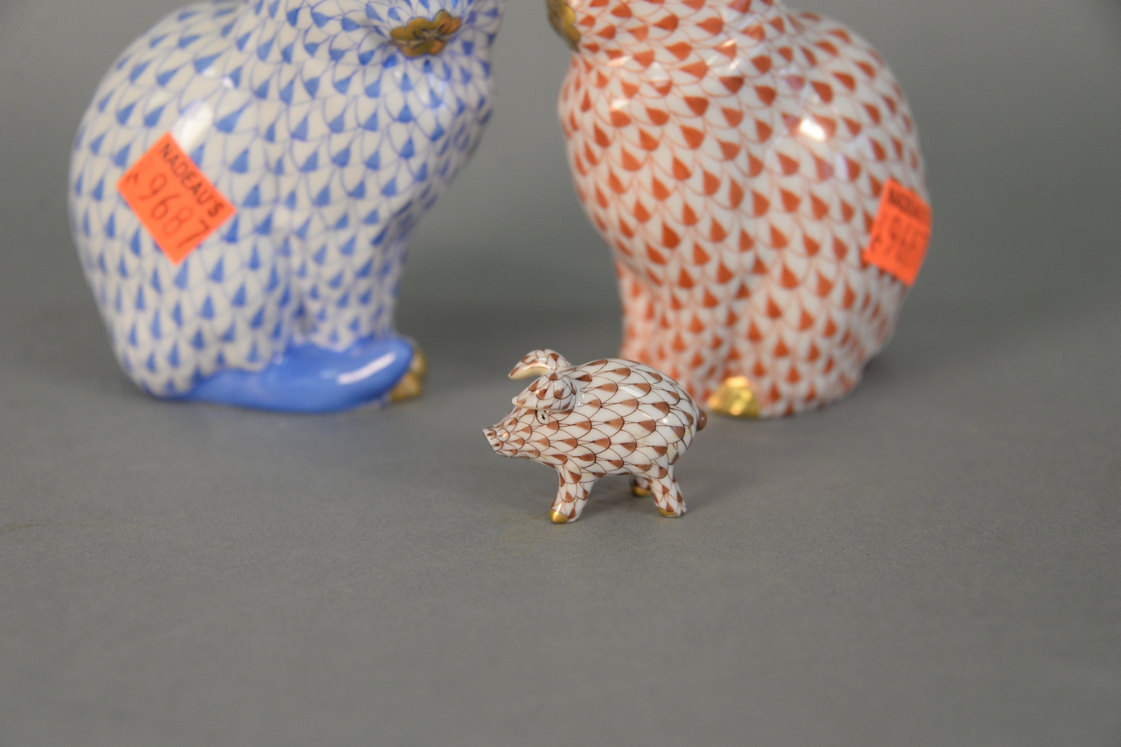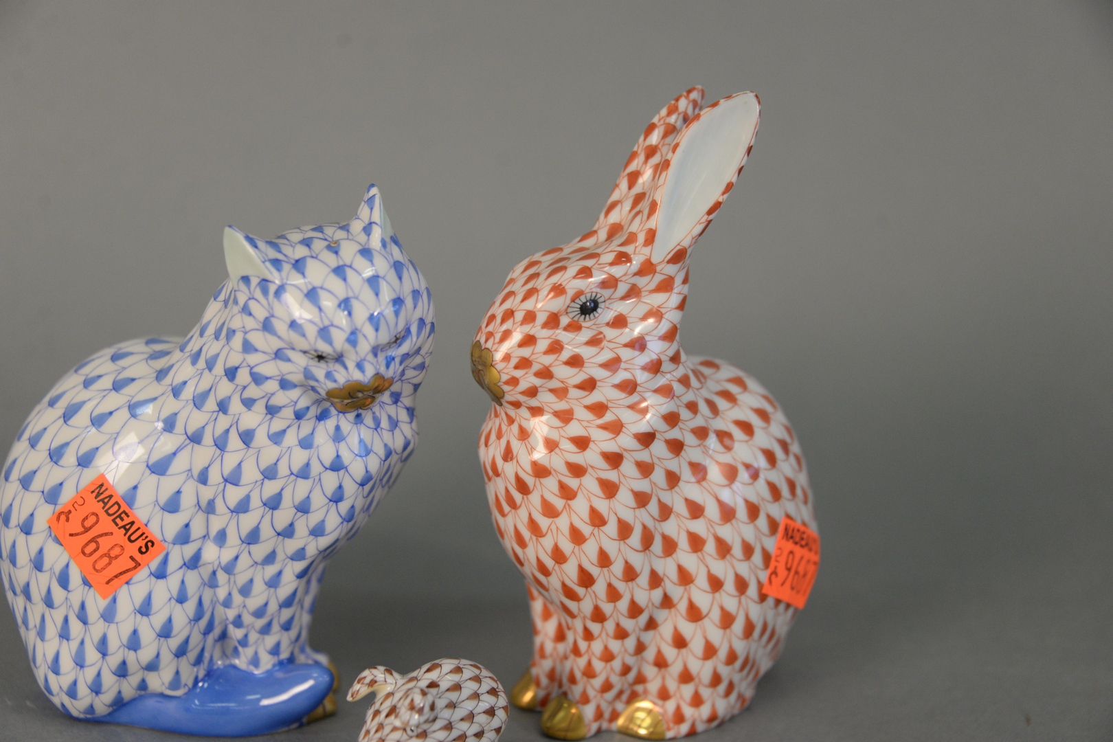 Lot 268: Three Herend Animal Figures to include rabbit, height 5 1/2 cat, height 4 1/2 and miniature pig, height 1 1/8′ each marked to the…