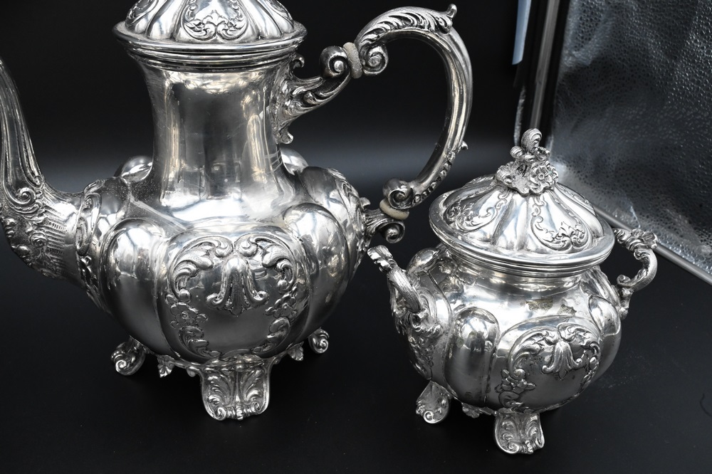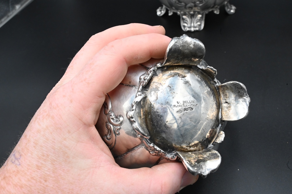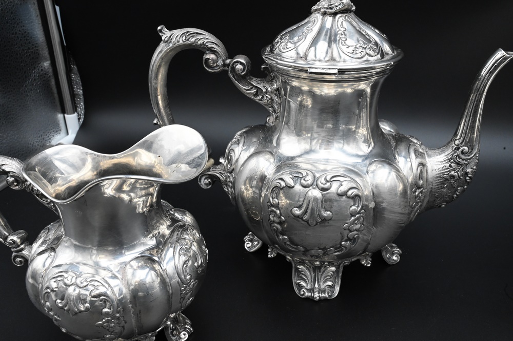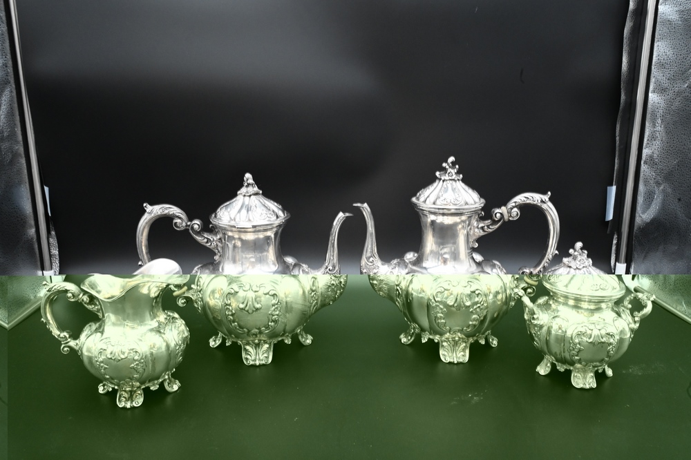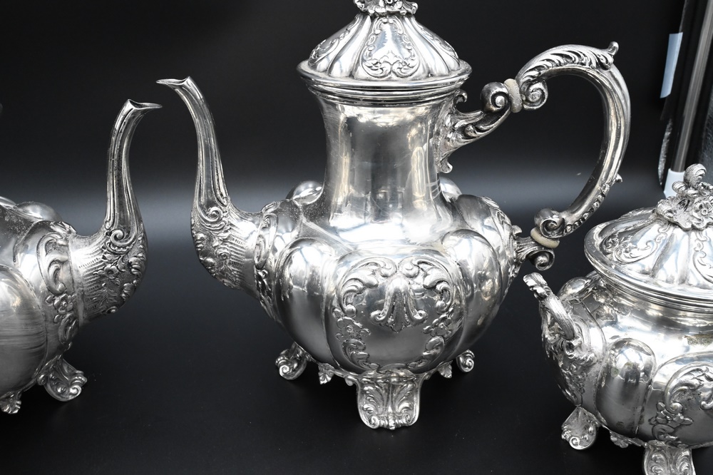 Lot 268: U. Bellini Four Piece Italian Silver Tea and Coffee Set, marked U. Bellini, Florence, Italy, .800, hinge loose on short pot, 101.2 t…