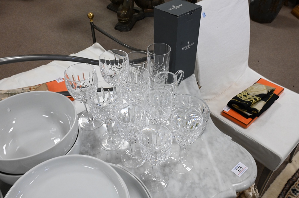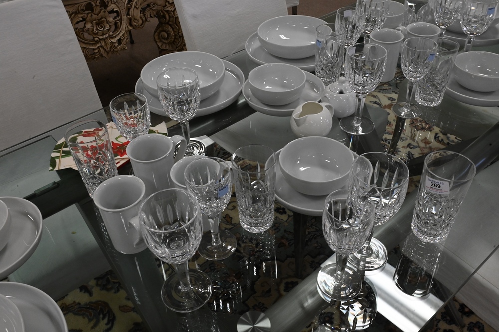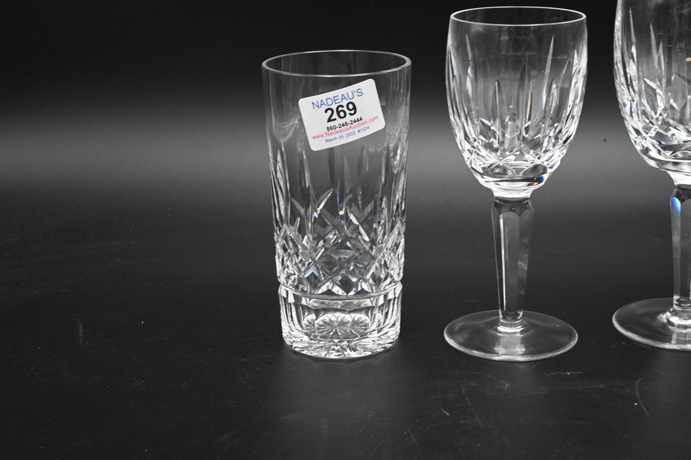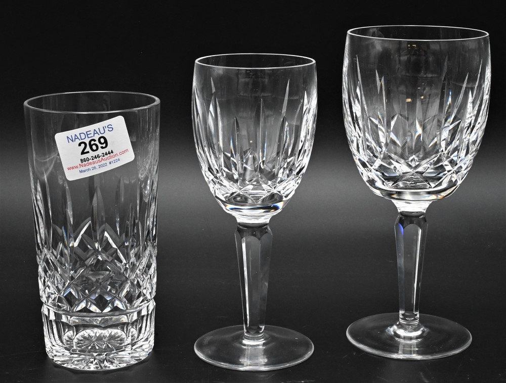 Lot 269: 31 Piece Waterford Kildare Set, to include 10 red wines, height 7 inches; 10 white wines; 8 water glasses; 1 creamer; 1 bottle coast…