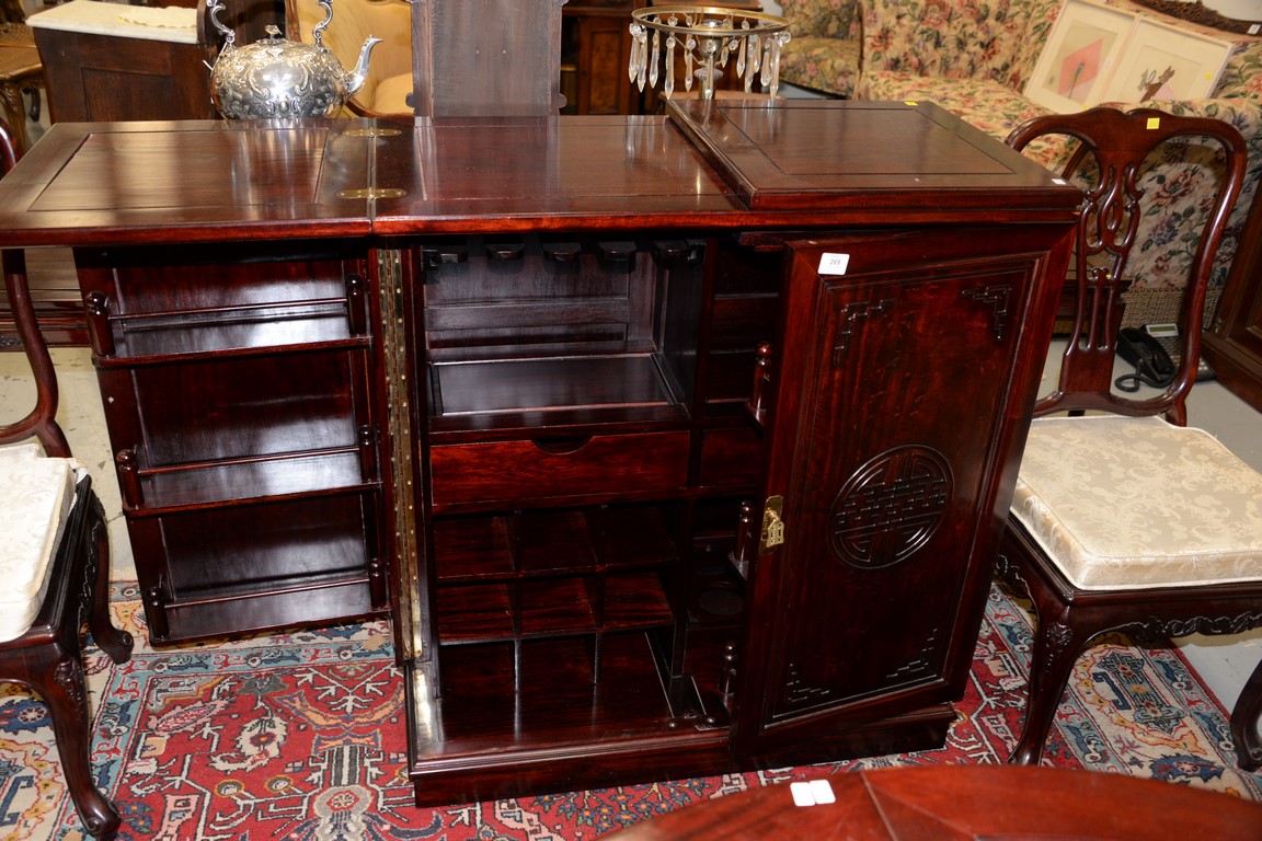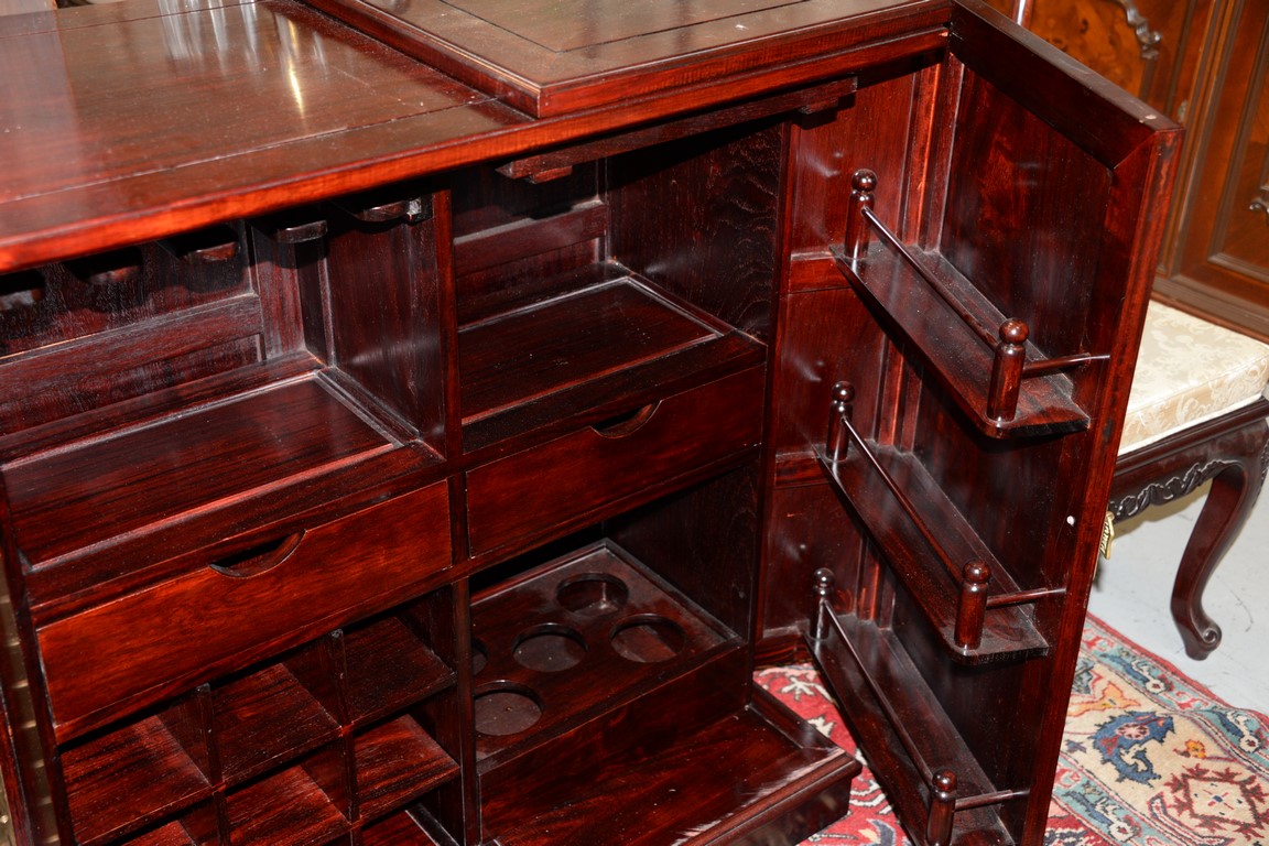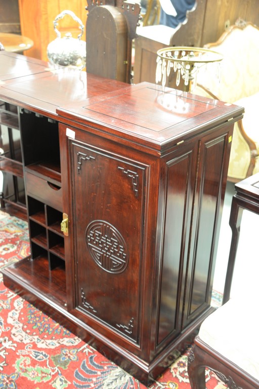 Chinese hardwood bar/cabinet. ht. 39 1/2 in. wd. 35 1/2 in. dp. 18 1/2 in.