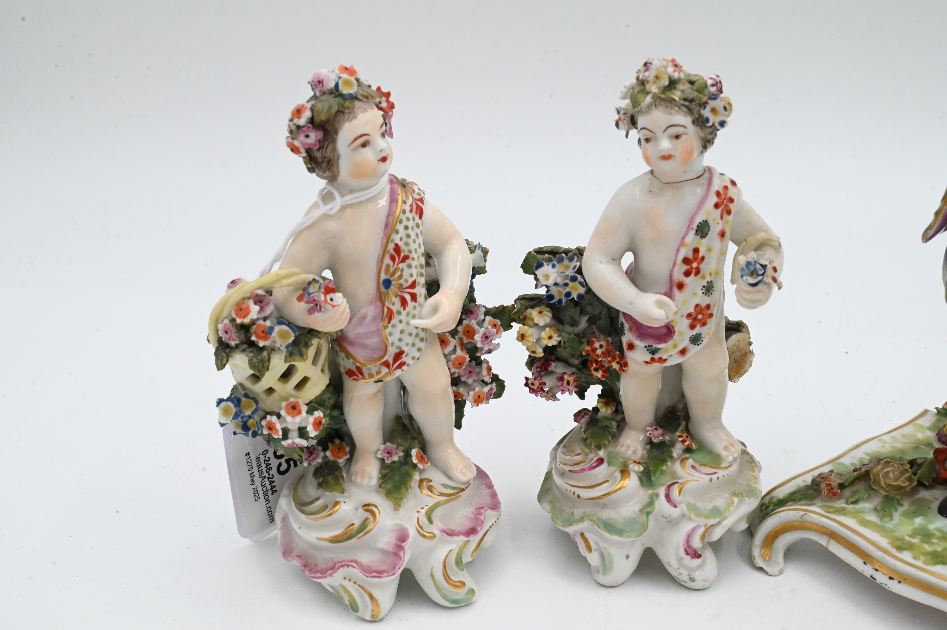Four Piece Derby Porcelain Figural Group along with Near Pair of Reticulated Dishes