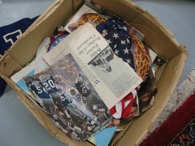 Group of pennants to include a Yankee pennant, magazine clipping, Yale pennant, etc