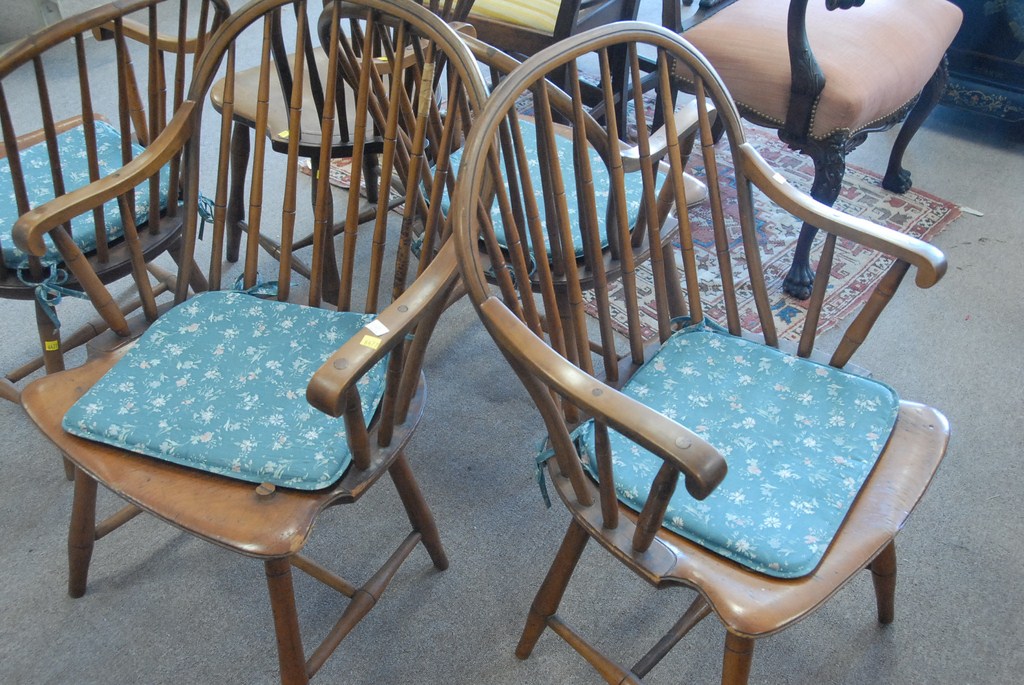 Group of six Windsor style chairs one rocker, four armchairs, and side chair.