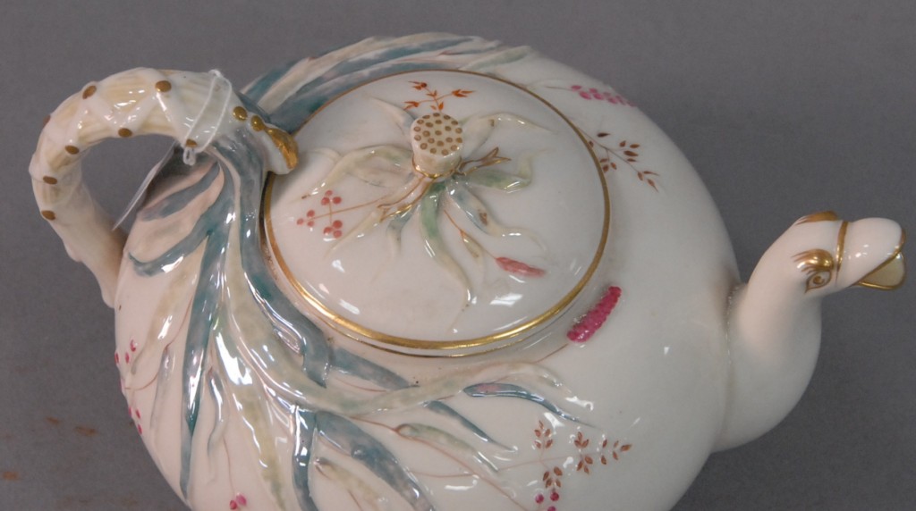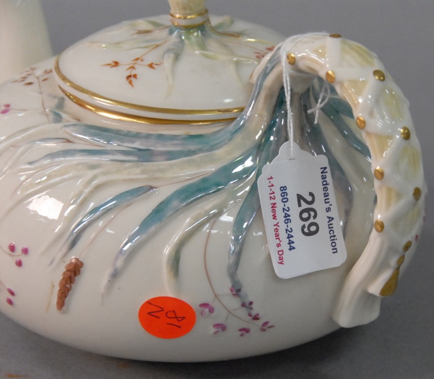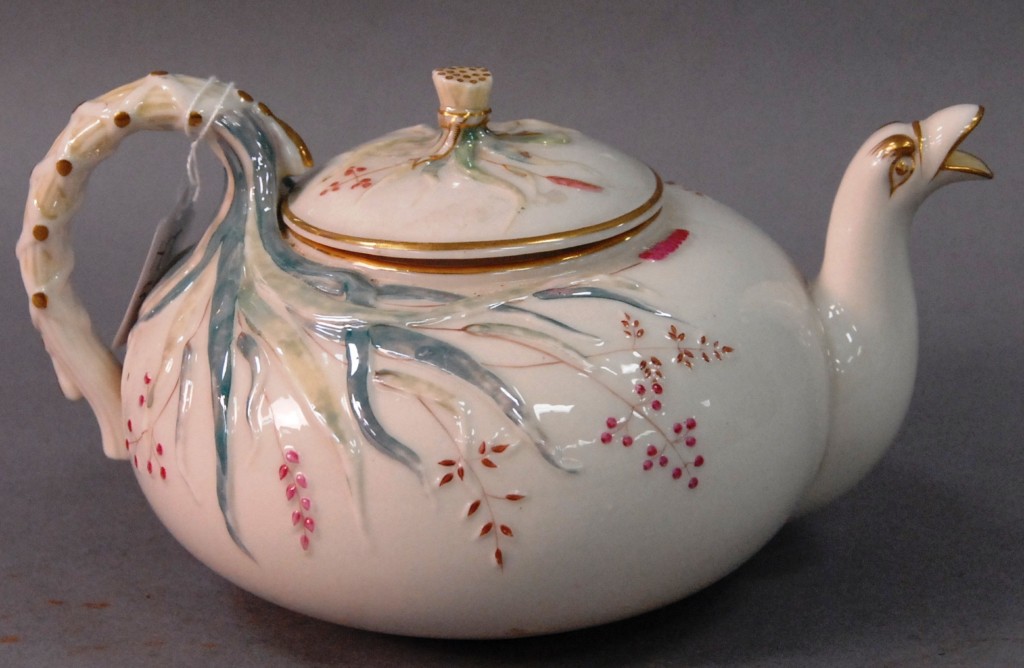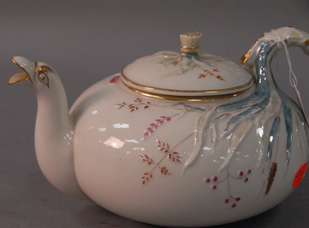 Irish Belleek teapot with dragon spout. height 5in.