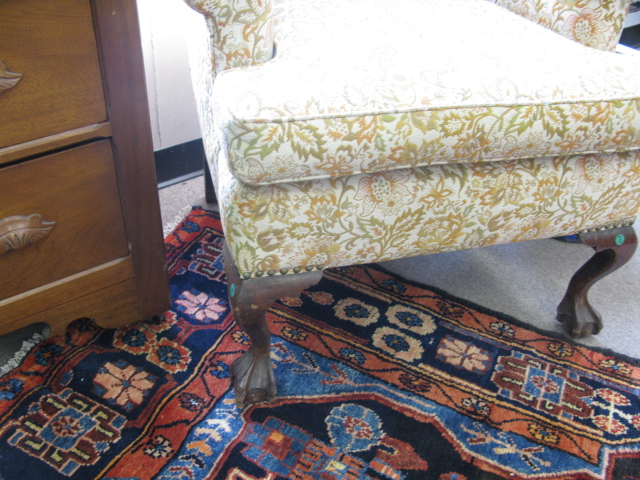 Mahogany Chippendale style upholstered wing chair.