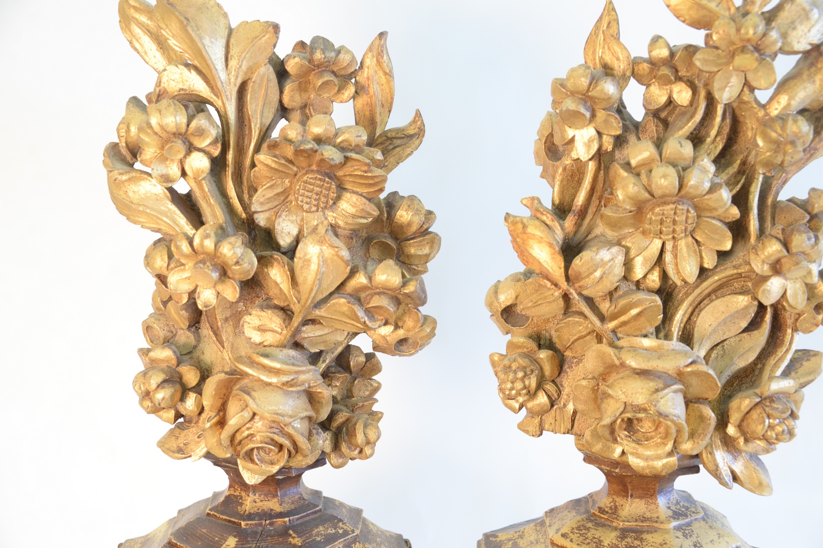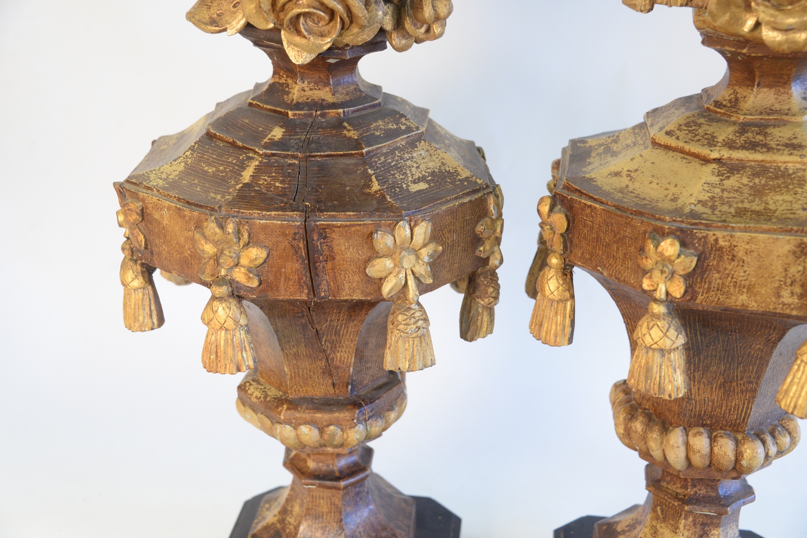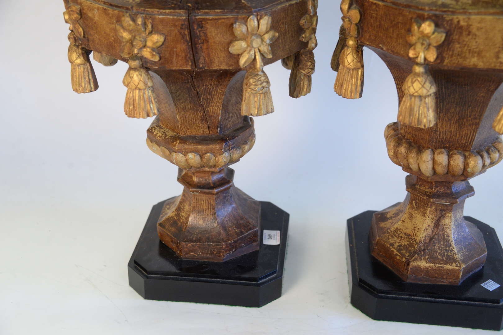 Lot 269: Pair of Carved Wood Cornucopia Urns, with gilt decoration partially made using older elements, heights 29 inches.