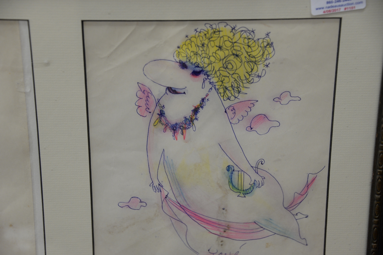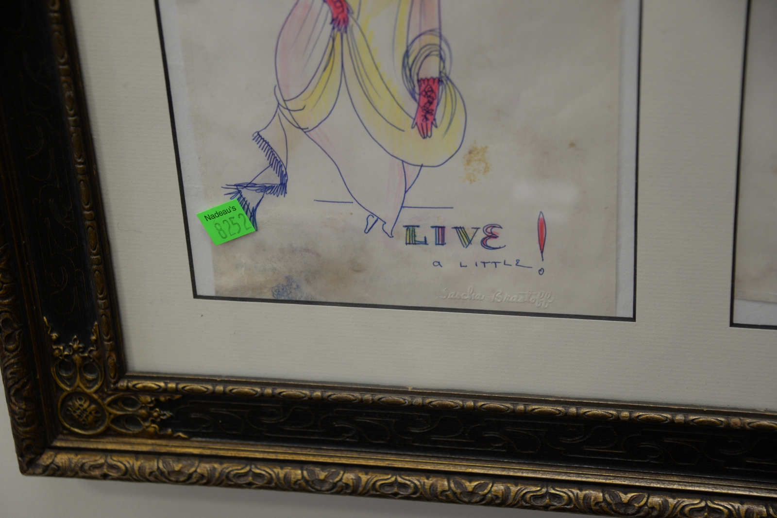 Lot 269: Pair of Sascha Brastoff 1918-1993 pen and color pencil drawings of women signed Sascha Brastoff. sight size 9 1/2 x 7 1/4 each