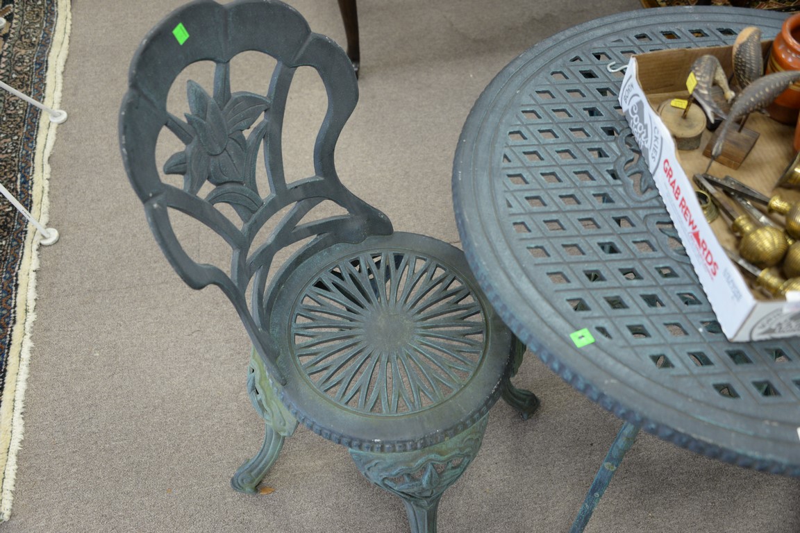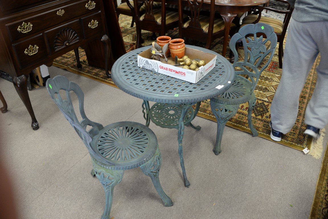 Three piece metal outdoor set. ht. 27in., dia. 27in.